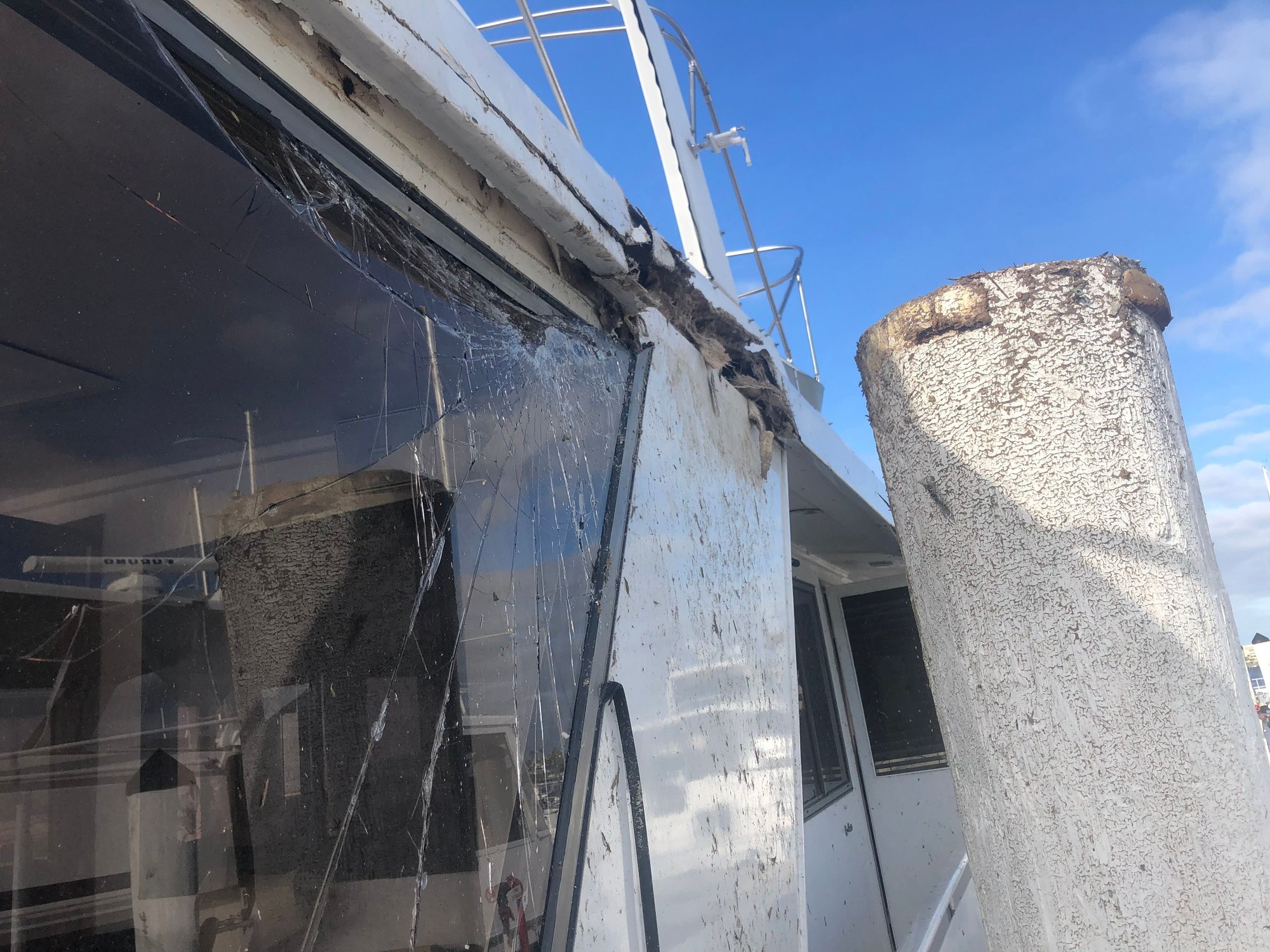 I live (or lived) on a 52 Jefferson in Fishermans Village Marina in Punta Gorda. Boat was sitting in the mud for almost the whole storm until the eye passed, then water came in and wind changed direction. It beat the boat to death against pilings….
