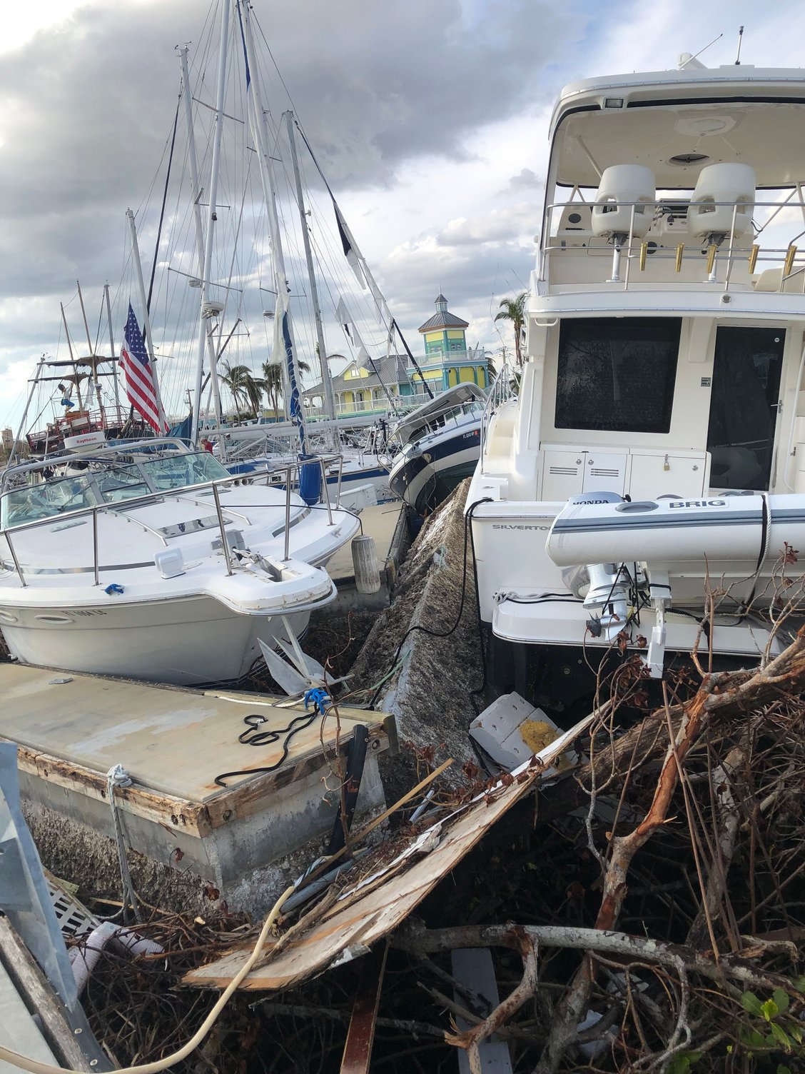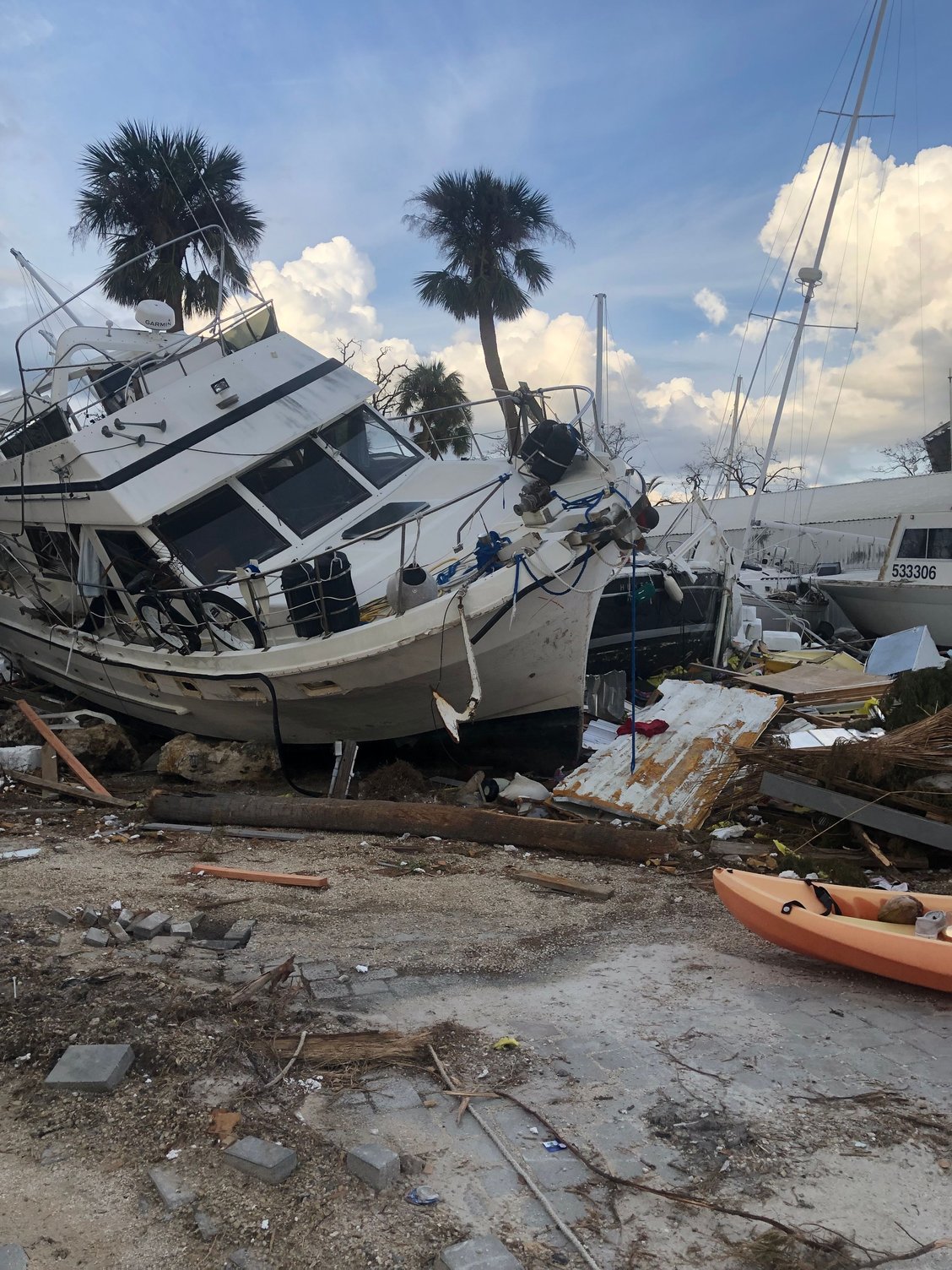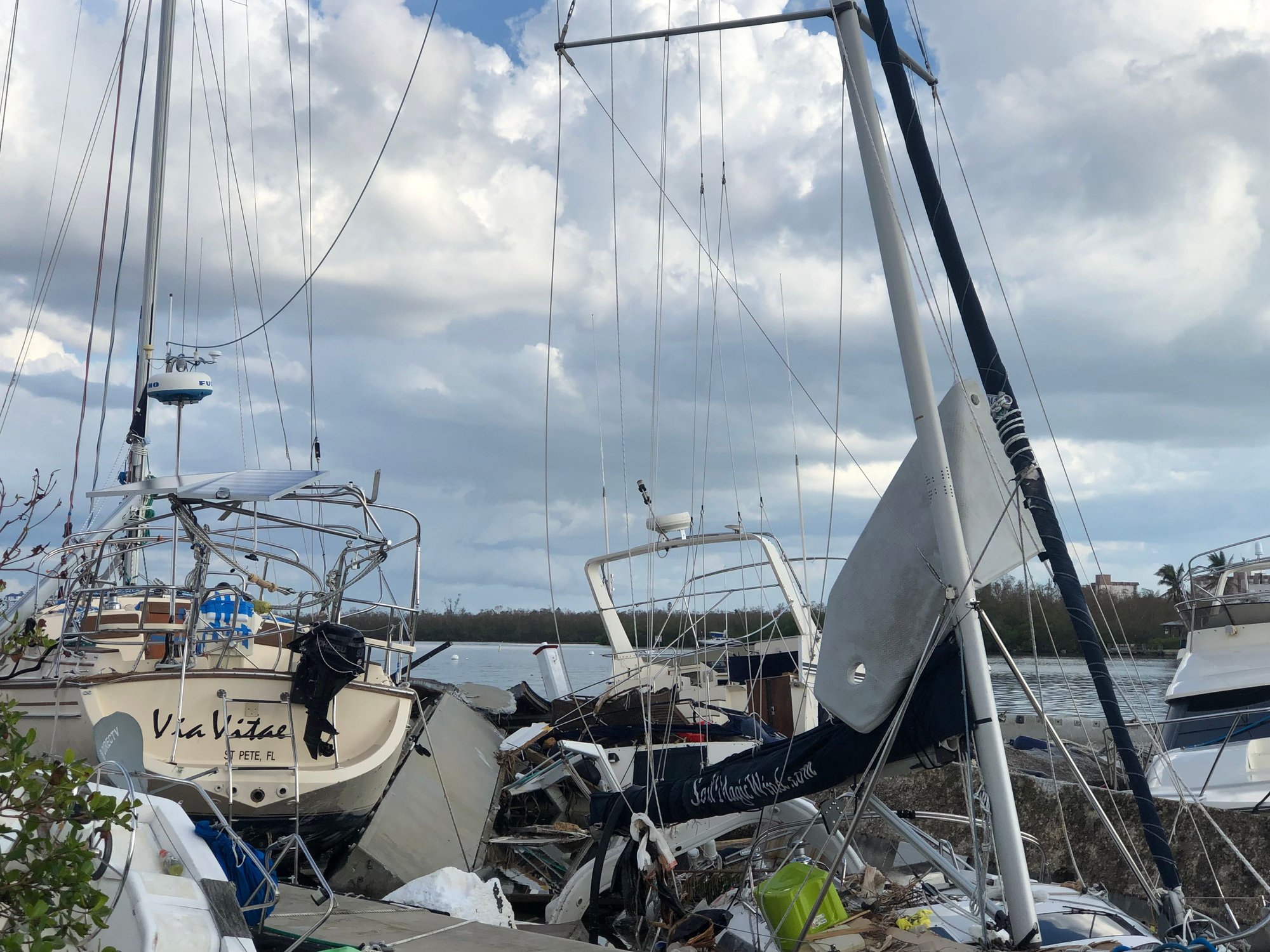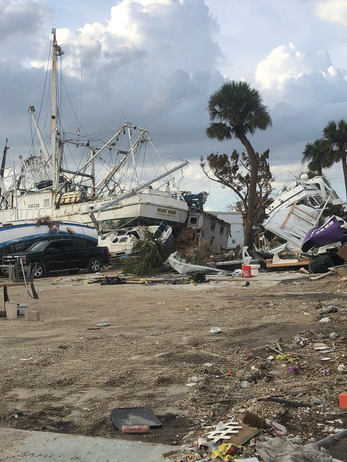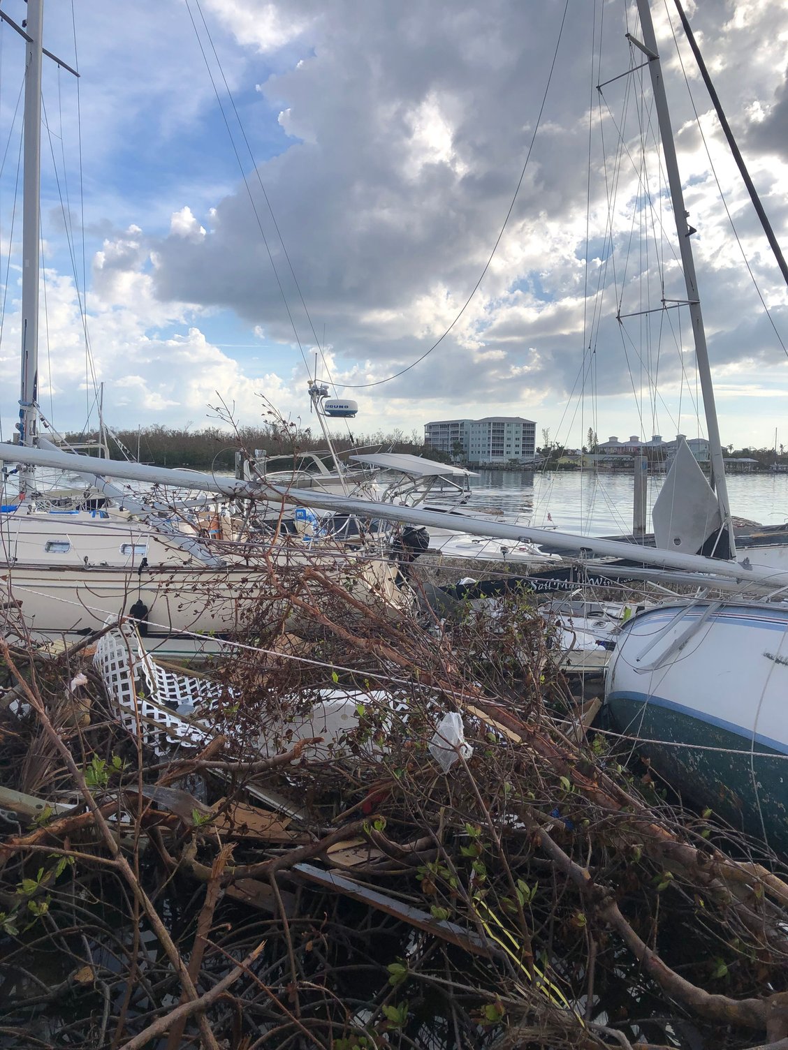4. I have no idea why the man in prior post picture of the Hatteras did not move his cruiser to another location, but many of us stayed put because the concern at route 75 would be too backed up to travel, and lack of certainty which way the storm may track. And maybe he felt that the storm was tracking north of the Fort Myers area and the Tampa would’ve been a poor choice based on the Fort Myers major TV stations weather forecasting.