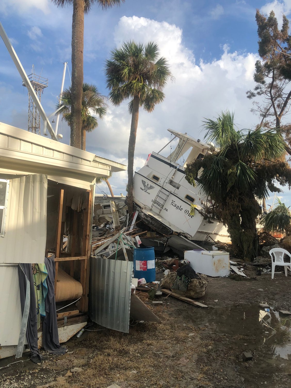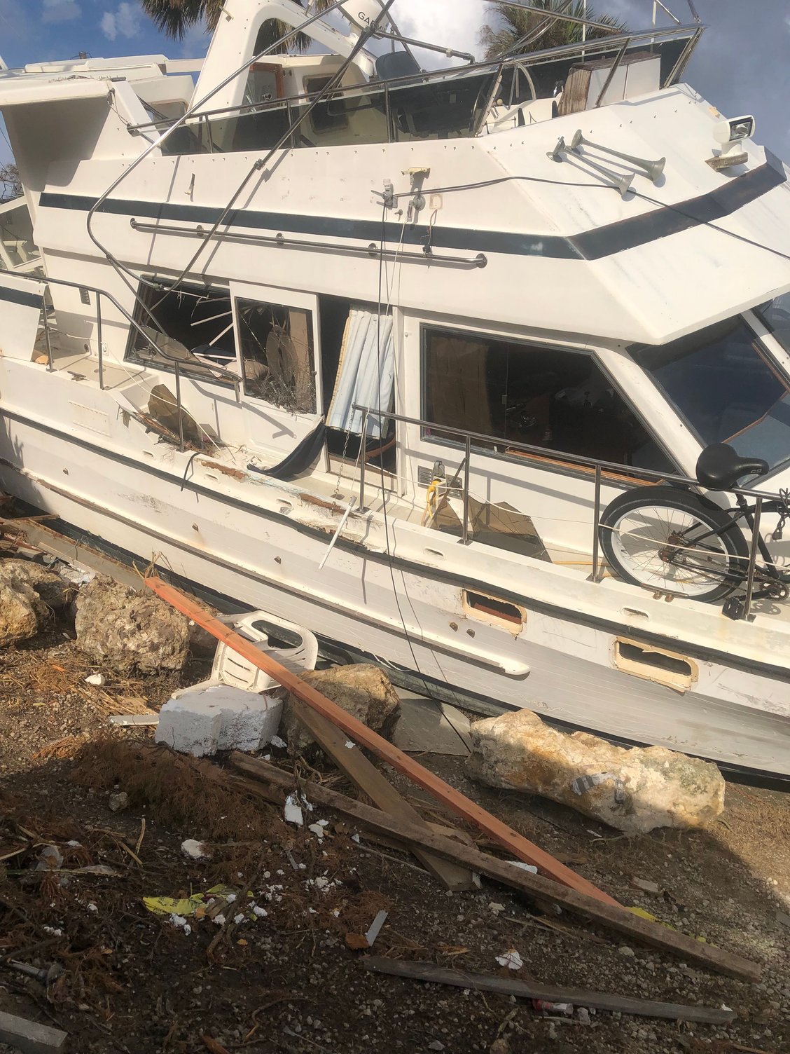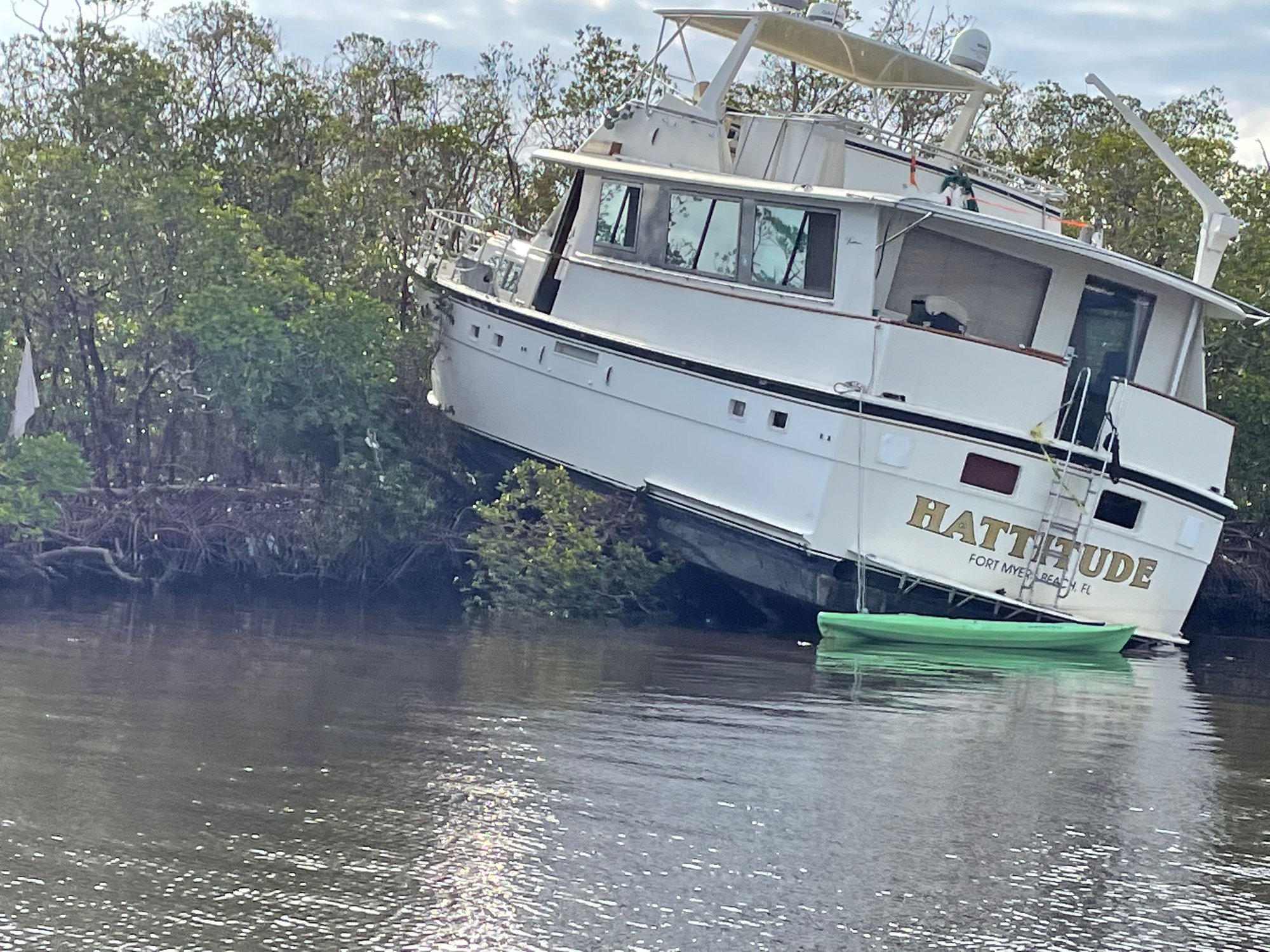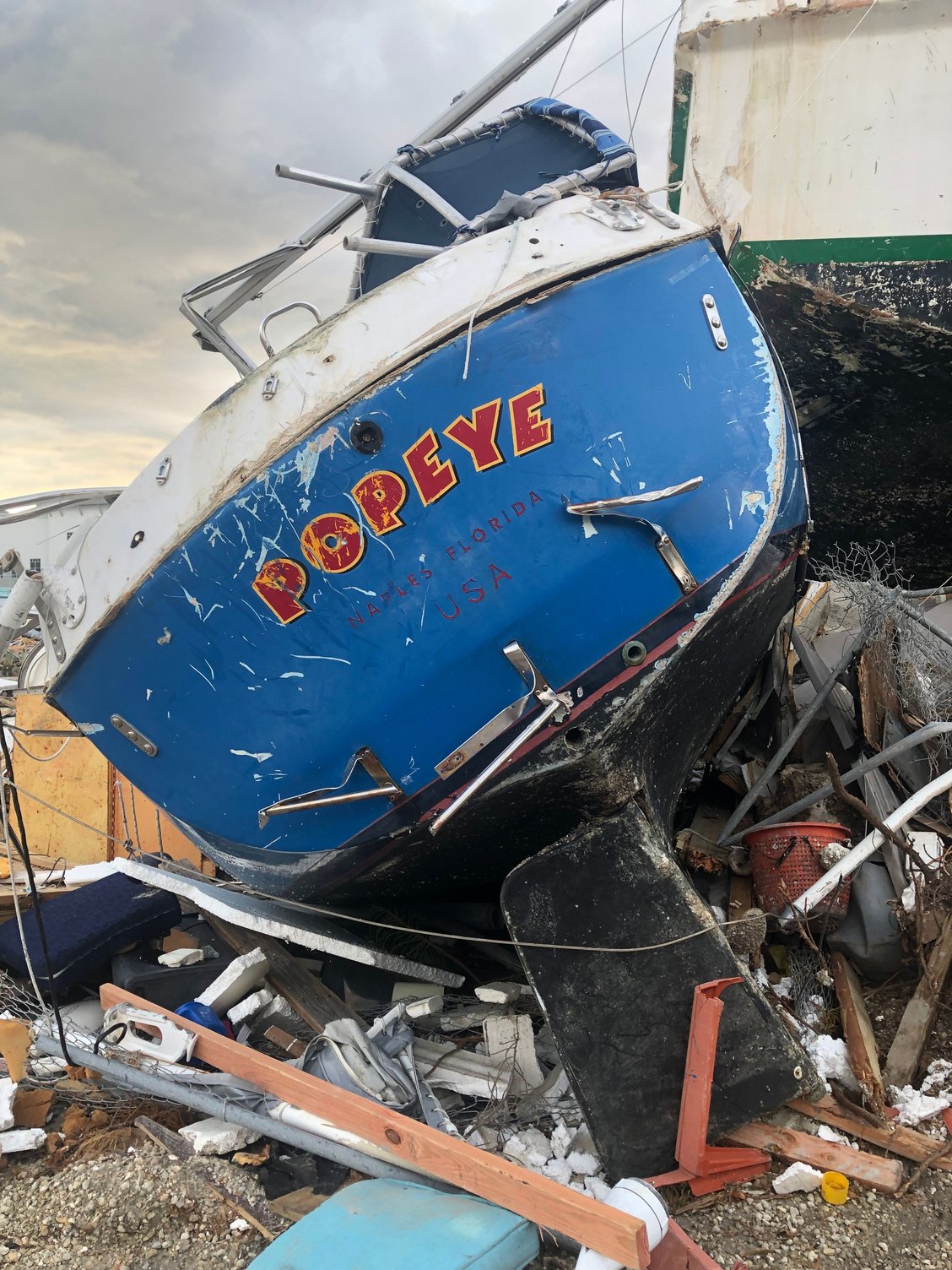 4. I have no idea why the man in prior post picture of the Hatteras did not move his cruiser to another location, but many of us stayed put because the concern at route 75 would be too backed up to travel, and lack of certainty which way the storm may track. And maybe he felt that the storm was tracking north of the Fort Myers area and the Tampa would’ve been a poor choice based on the Fort Myers major TV stations weather forecasting.