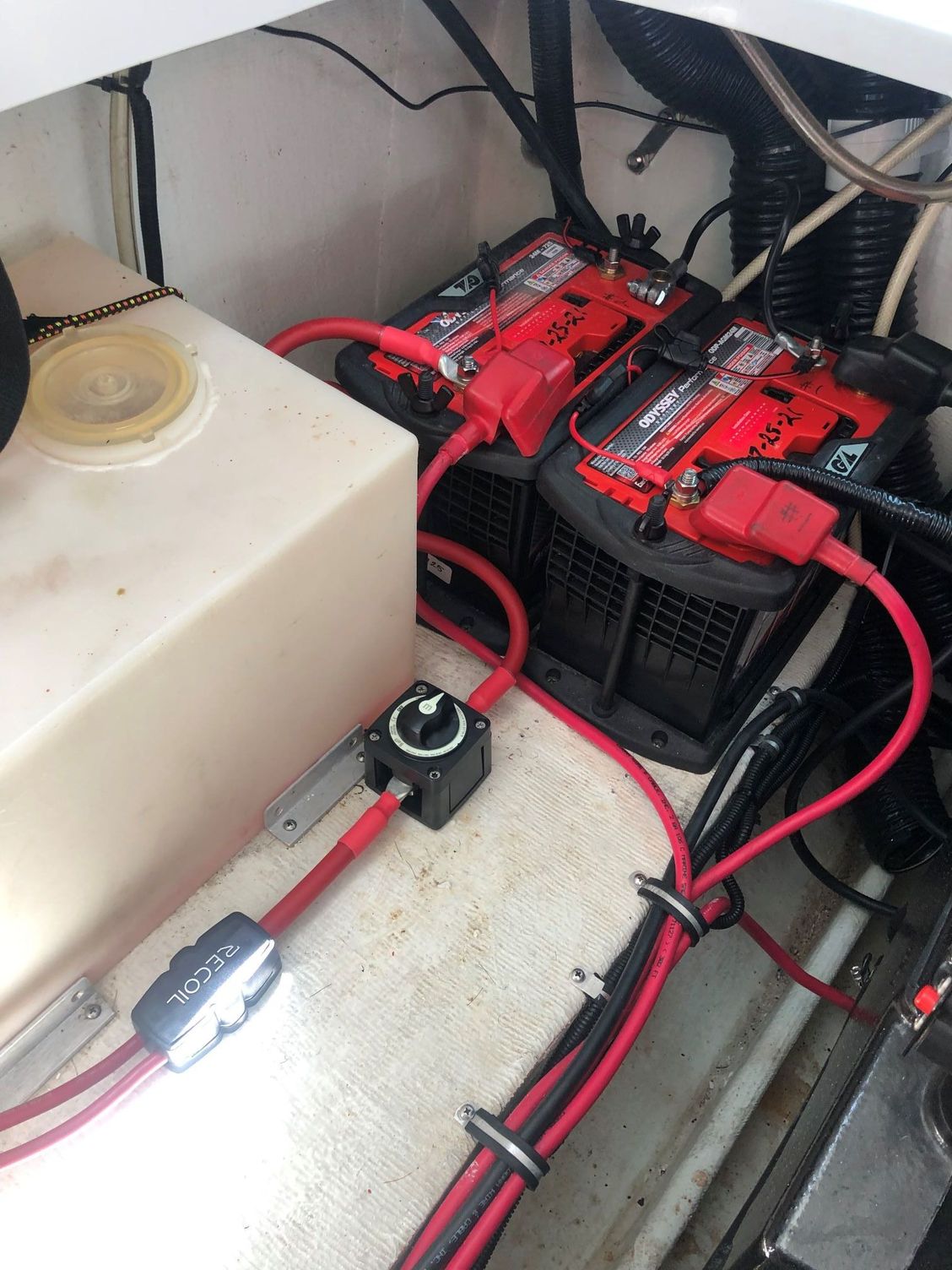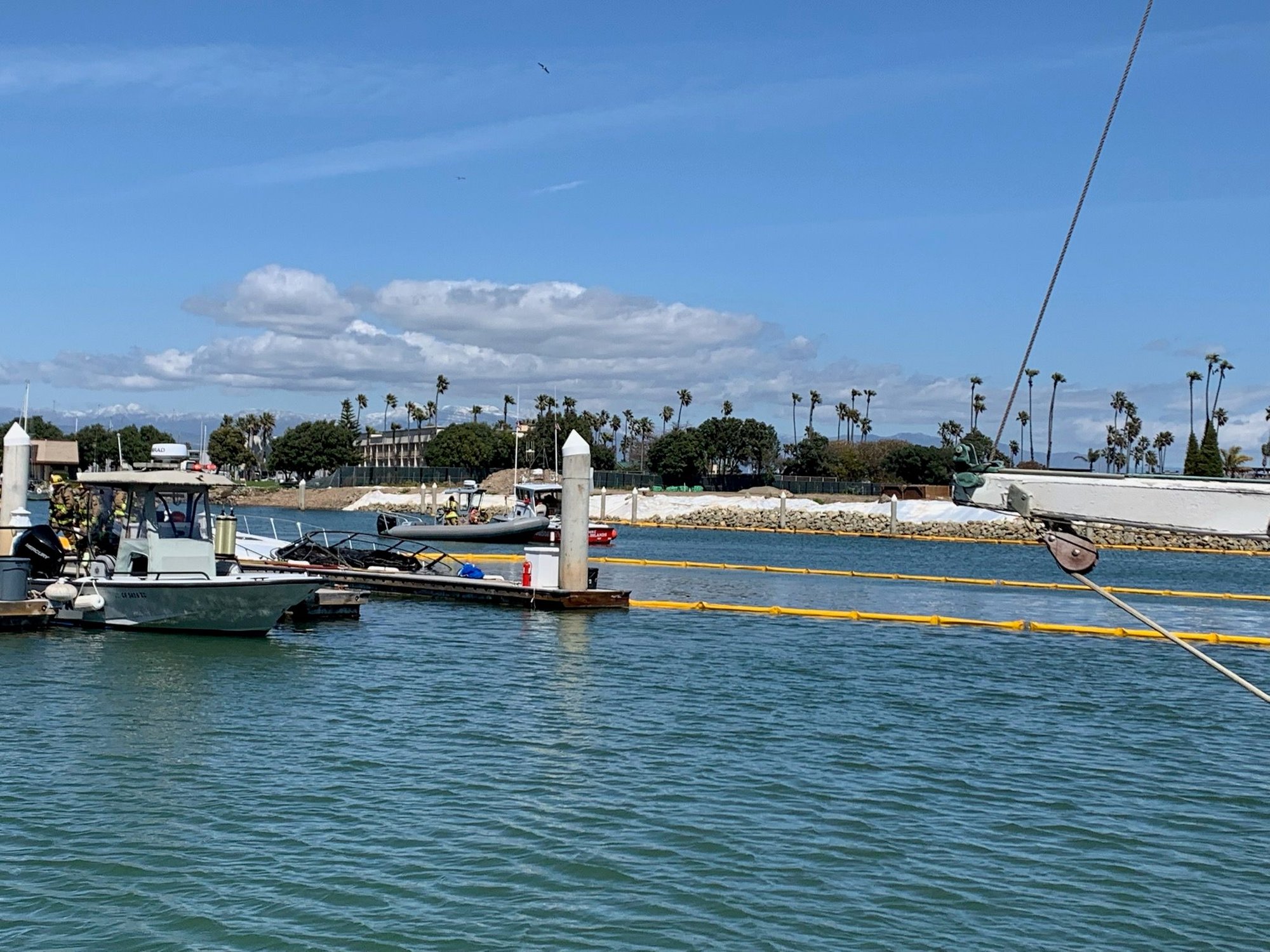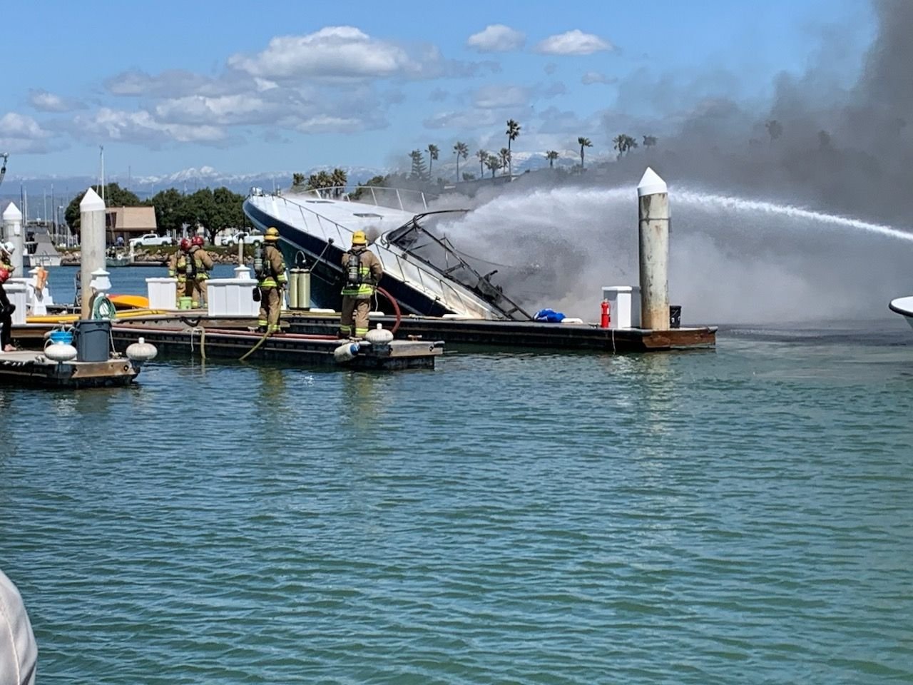From what i heard the boat was getting a service and they dropped the oil filter on a battery and then things went south from there. Tank has video from when it started, this was in Channel islands harbor, oxnard california