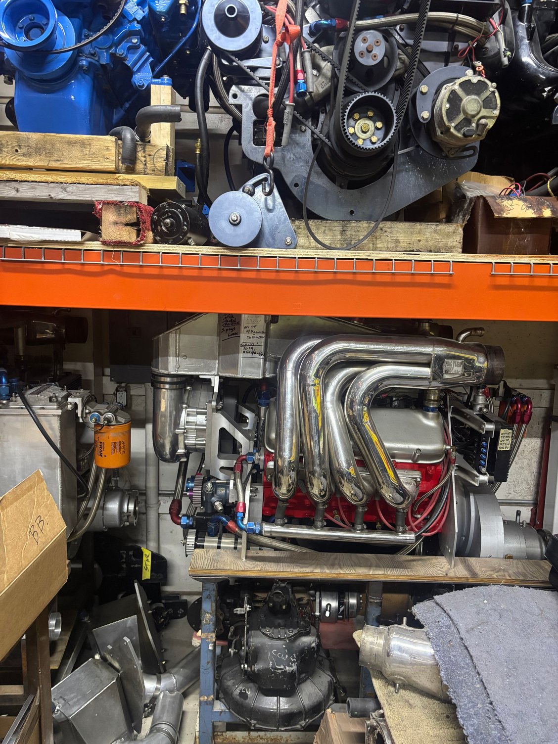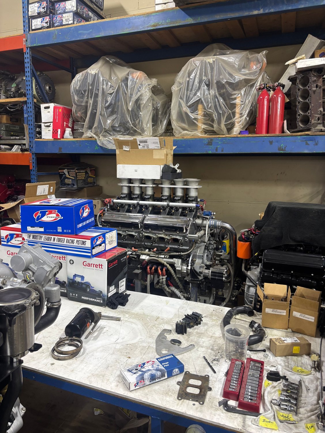 Stopped by Wesco Racing this afternoon to see progress. Blocks need to be honed, needs new rings, springs, valves, etc. Might be able to use existing pistons, cams, rods, cranks, etc. can’t wait to get these engines put back together, painted and dynoed! A lot of cool engines in the shop. Here are some pics: