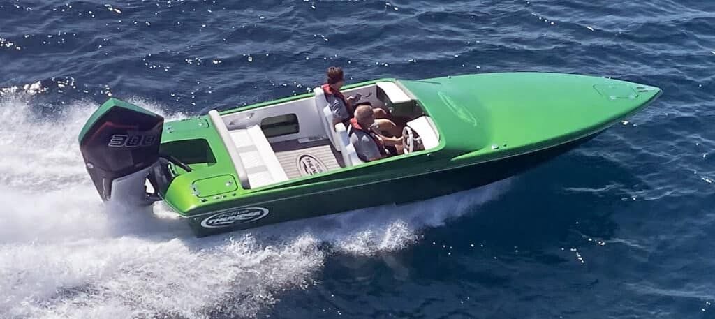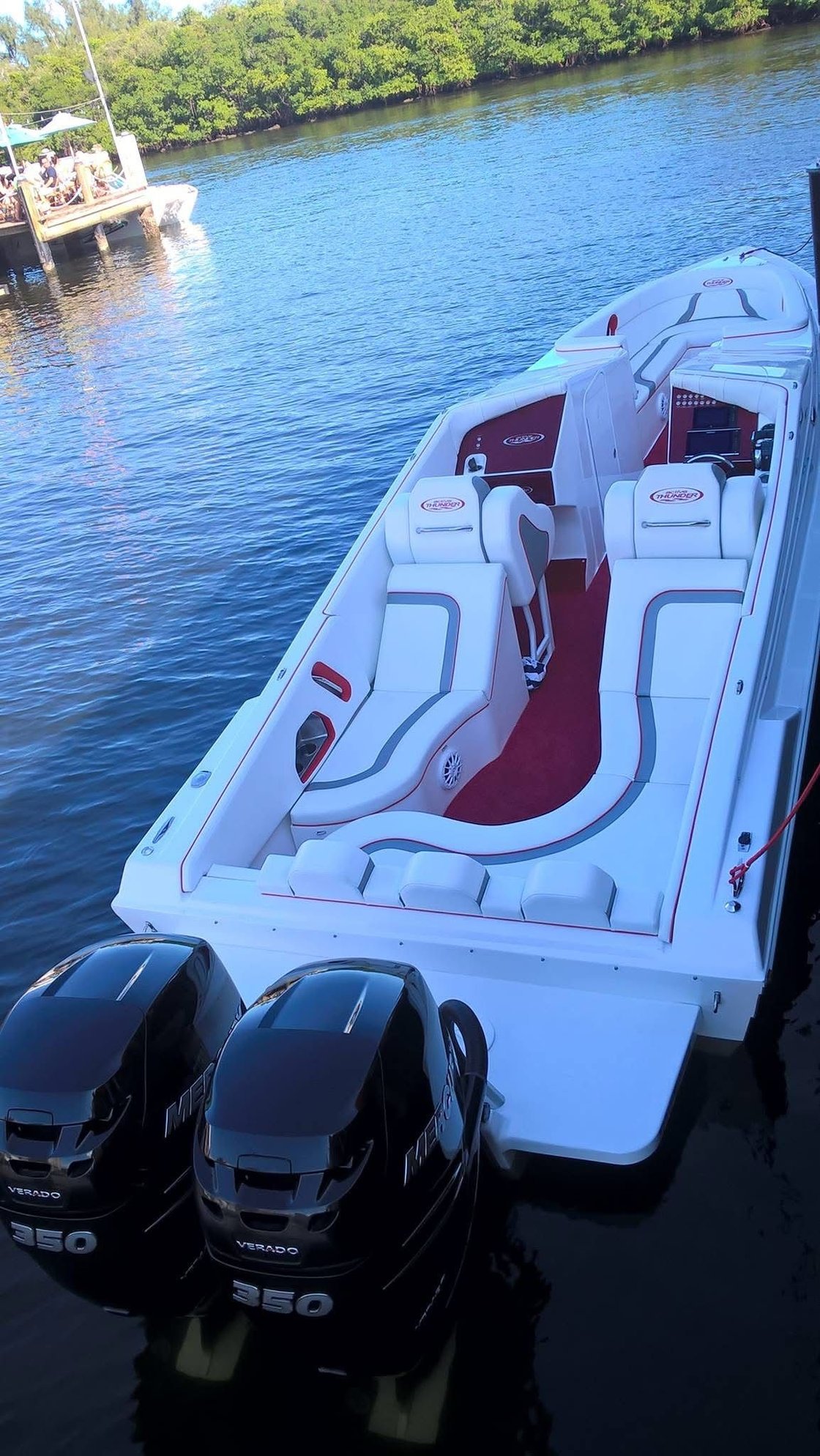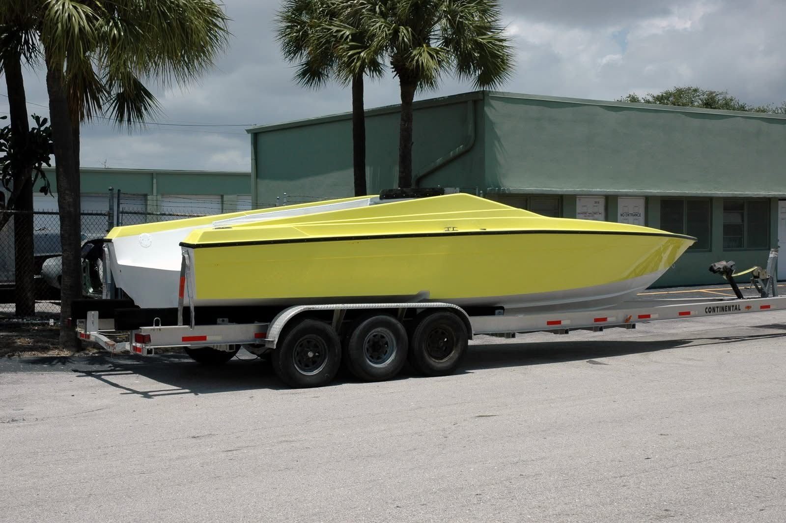 As a matter of fact, Mercury has commissioned Pat to build several including the pictured yellow 37, outboard boats for their exclusive use/test testing of the late model outboard offerings. He dared them to break the boat, which they have not done yet.