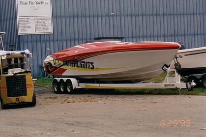 The boat is Red, Whit, & Blue with a White Radar arch and full load of electronics