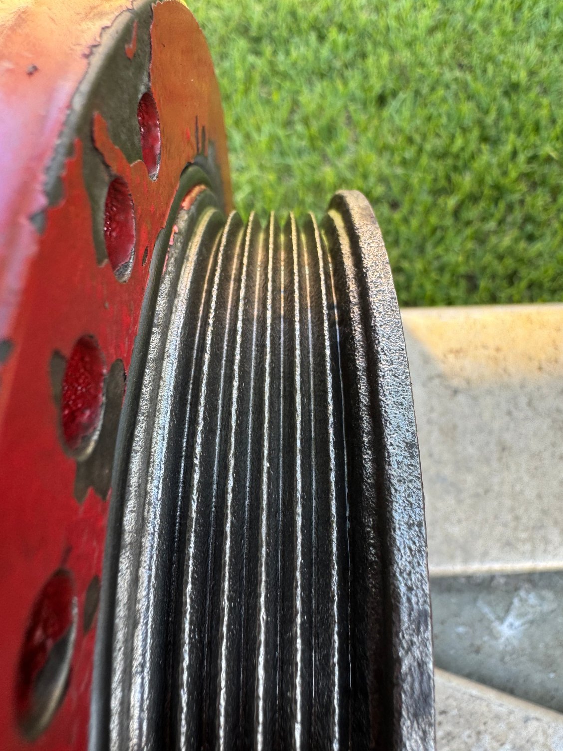 Hold the the balancer in hand and slowly rotate. The wires will burnish the high spots on the pulley. Smooth it out. Stai less is harder than the iron.