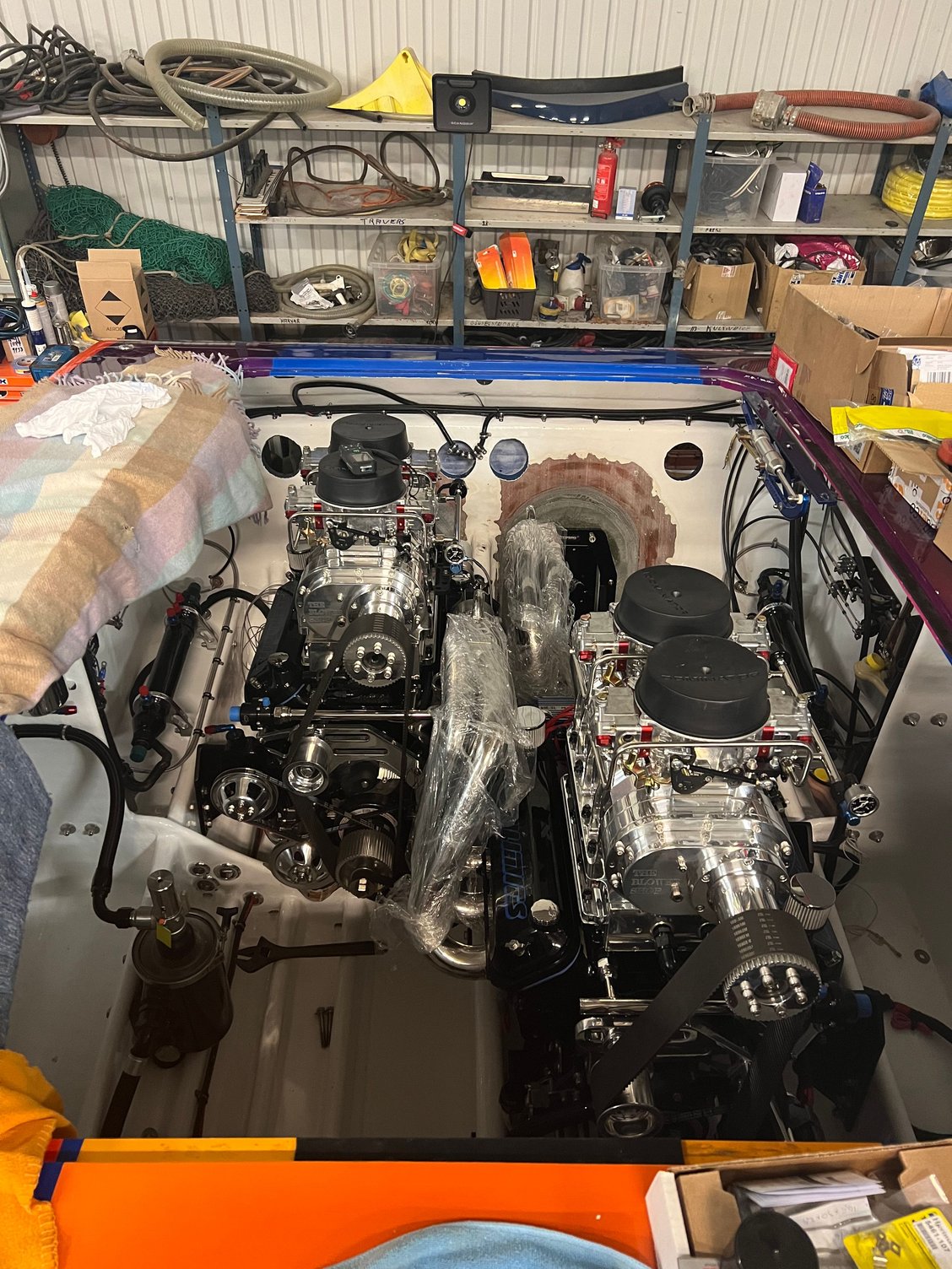 I’m doing a drive conversion on a OL and been forced to move the engines forward and downward. That is causing me some problems with the fit on the headers VS transom holes. On the rear engine it’s gray stellings and on the front engine there’s black/white stellings. The front motor I guess will be ok but the rear With gray that are swept down and pointing in to the drive flange on the inside of transom is bugging me.