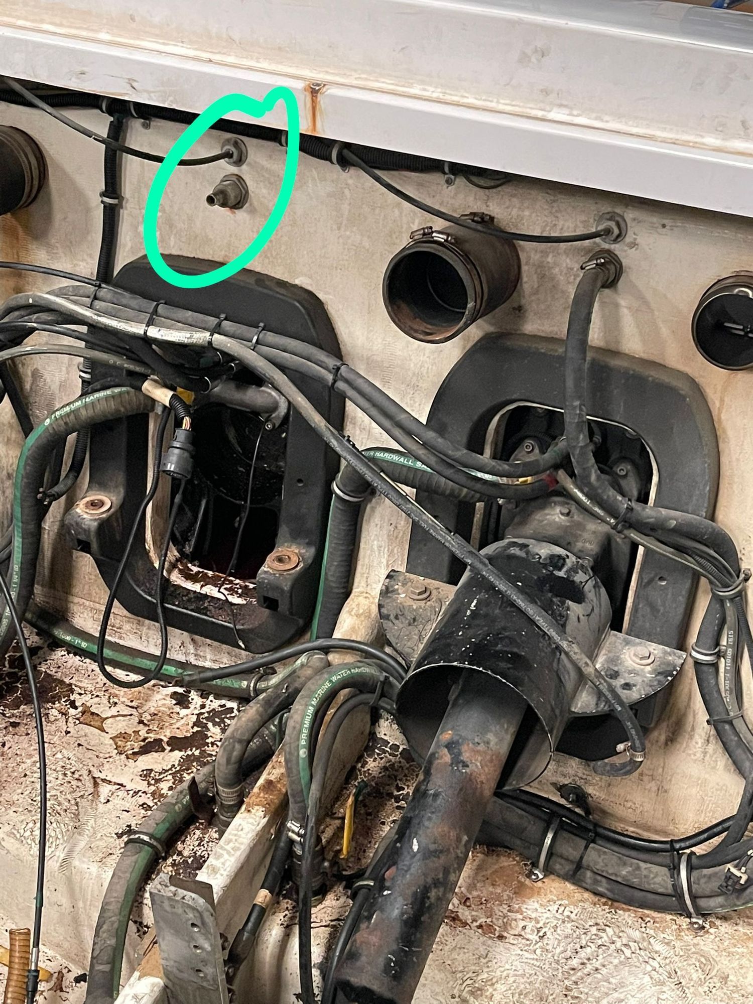 in the engine bay I found two fittings on the transom above the assembley and couldn’t chase the hose to its source. I have attached a picture for reference.