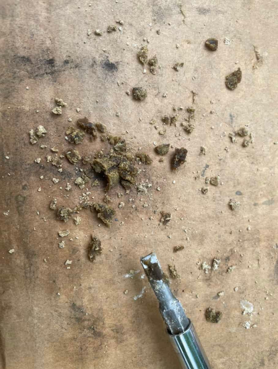 That's a pretty extreme example but you get the idea. It was yellow and brown and sticky. Handling them, my hands felt sticky like from sugar/honey and was hard to wash off. It was an effort to get them cleaned out.