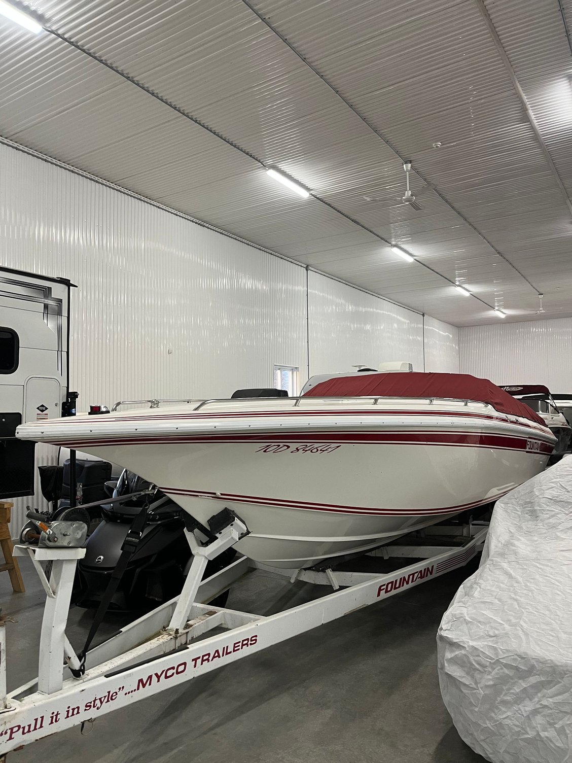 Details... 1992 27' Fountain, 565, twin 1000 cfm, tunnel ram, Haltec EFI, Valako ported heads, RV cam, 10.5:1, Stellings ext box, standard length bravo, labbed 28 bravo, 6400RPM, 98.6 mph. And a handful from 70-80mph.