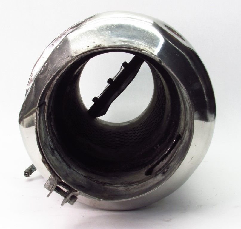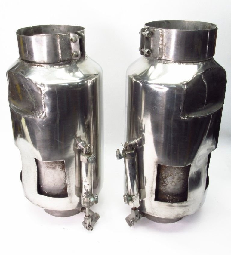 To get more complicated, my water jacketed tailpipes are long/straight enough to install a slide in muffler as well, they're 3.86" ID with the jacketing. But there's a minor dimple where the water outlet is welded, and I can't drill into the jacketing, but could drill into the larger ID edge/tip of pipe right after the jacketing ends. In the tailpipes I have 11" of straight length to work with, plus I normally run turn-downs slipped on to them (to shoot exhaust back), which could give me a few extra inches to work with, but with a larger ID. Or I could do some combo of a smaller OD slip in muffler to my tailpipe if I can secure it properly, than a larger OD muffler bolted to the tailpipe. Just trying to figure out what product options I have to work with.