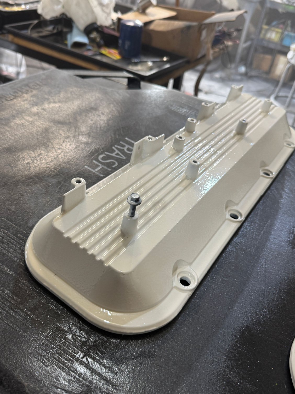 Intake is gonna be the same pearl white. Leaving the block black. The coils should look pretty cool contrasting against the valve covers. Planning to have an engine cover laser cut out of aluminum that will be powder coated in the same Illusion Purple the rest of the trim on the boat is done in.