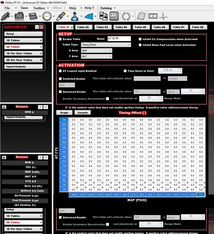 Regardless how he sets them up, he needs to setup some safeties. If not, might as well put a blow through carb on and start reading plugs. Tuner built in some safety triggers. OP, FP, CT, I think. All set to limit RPM. After reading the plugs, on Smitty’s advice (he doesn’t tune hardly any boat engines), he also dropped AFR at a handful of key spots about 0.2pts and smoothed the table. I’m going to Cumberland this weekend, and I’m going to have a laptop with me with the Holley software and TeamViewer installed. If anything is amiss, he can capture my laptop and make any adjustments from home. We’re not anticipating any complications, though. Thanks. Brad. |