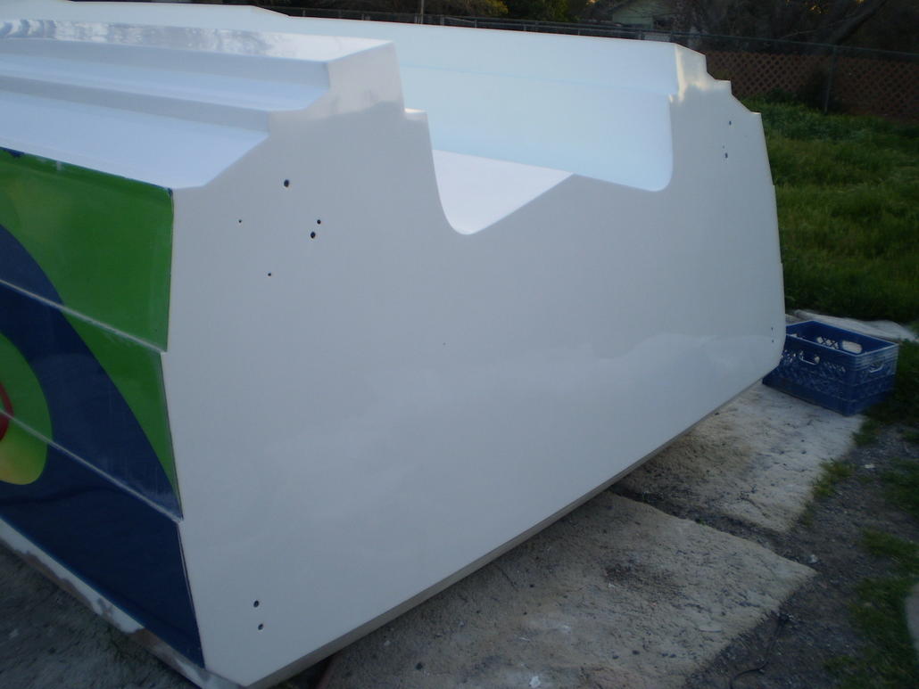 Sanding sucks ass. Grindin on fiberglass does as well. I have alot more time than I do money, so Im a sandin mo fo!! Transom is done and buffed. I cant believe how shinny it is! I have about 1 hours with of sanding then Ill buff the entire bottom. Should have everything done tomorrow. Looks like Ill have it back on the trailer wednesday. I have to glass in the fuel tanks and a bulk head. More gelcoat in the bilge, dash, and deck then its time to rig this bad boy! After all the gel ive done so far, i figure about a week to complete the rest of that. I m figuring 2 weeks to rig. Based on those estimates desert storm may actually be a reality! Ill take some pics once im done buffing. I have no ballast tank in my boat.