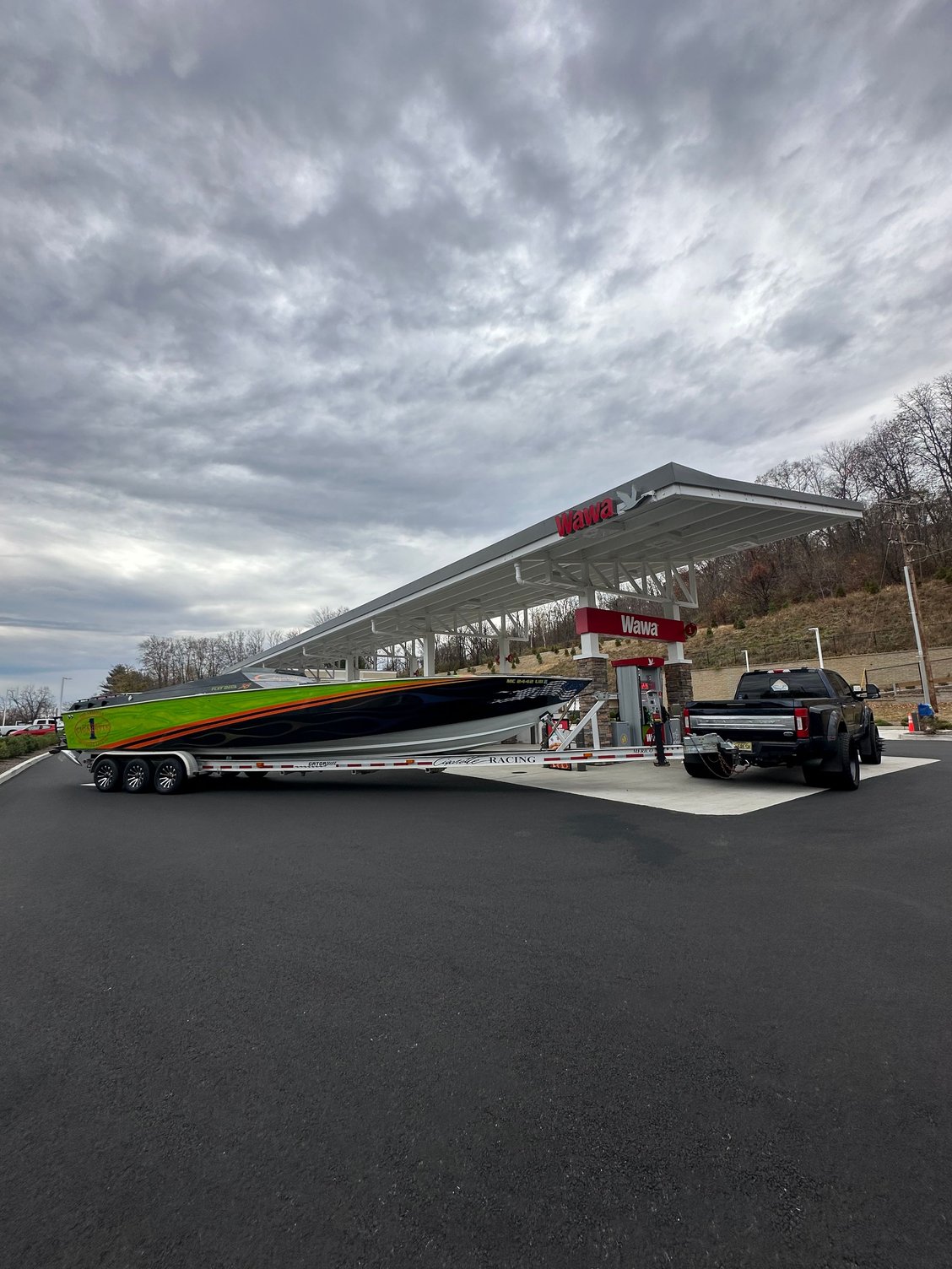 Well, enjoyed the hell out of the boat this season. Had a few minor problems with rigging and outdrive but all were fixed. Unfortunately we ended the season having low oil pressure, engine is out and at the builder already but we are already working on improvements. After some research I found that 7 marine outboards had raw water cooled intercooler being made out of copper. So I got one of those to eliminate high IAT’s on extended runs with the current set up. Also going to be doing a bigger oil cooler set up and possibly headers. The boat went a best 78mph at 5500 rpm. But also went 75mph with 5 people, full tank, and full beer cooler. Can’t wait to see what next season brings.