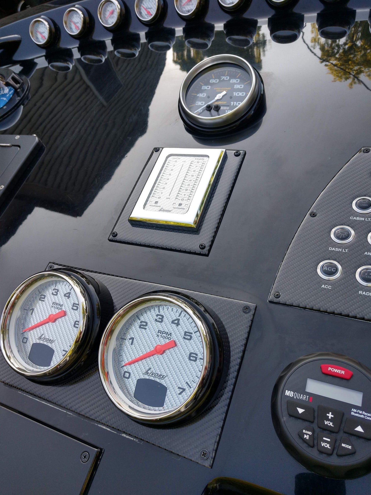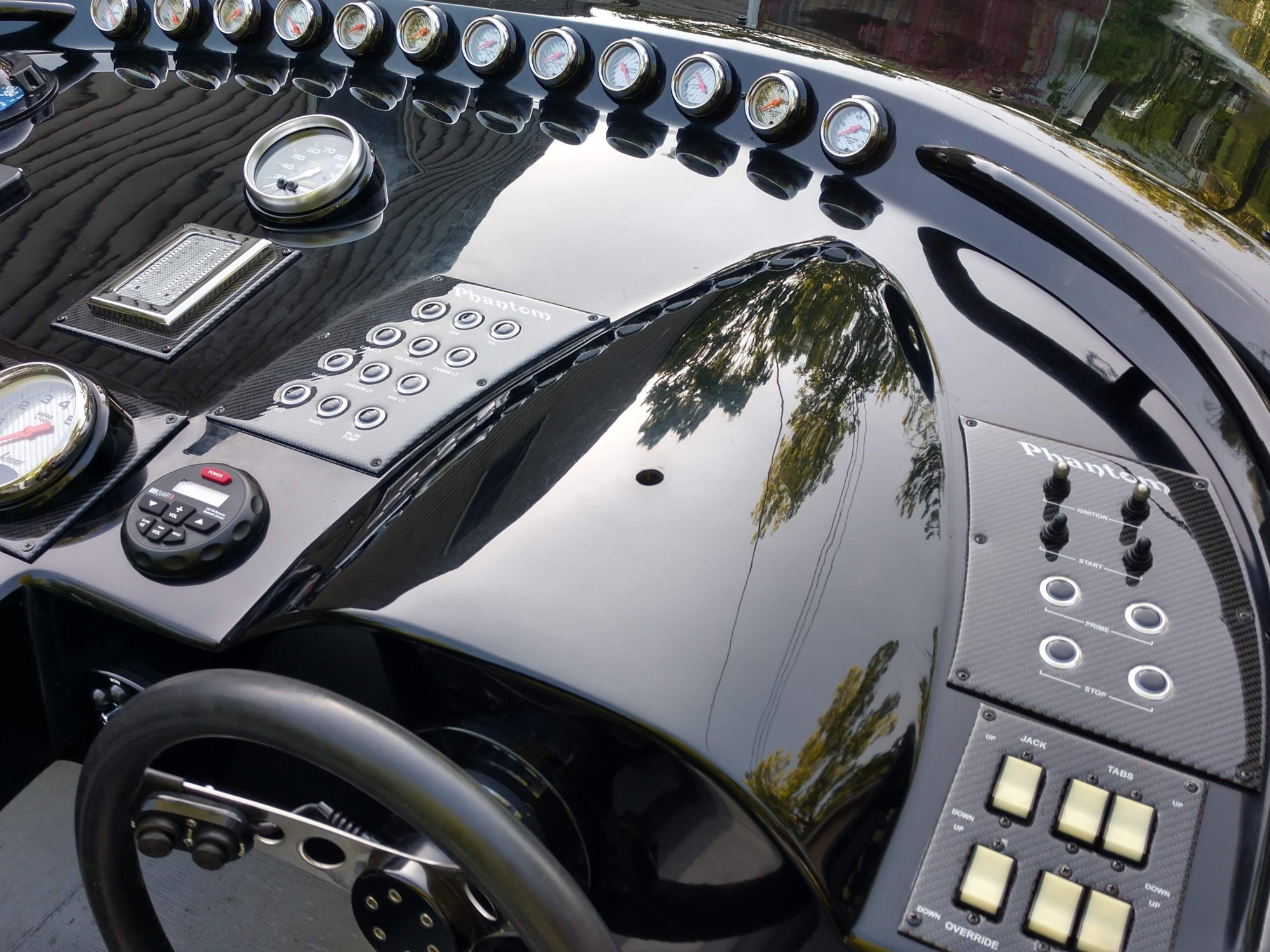 The condition of the boat shows it was definitely loved and appreciated...the layout of the guages/carbon panels on the perfect black is "AAA" perfect