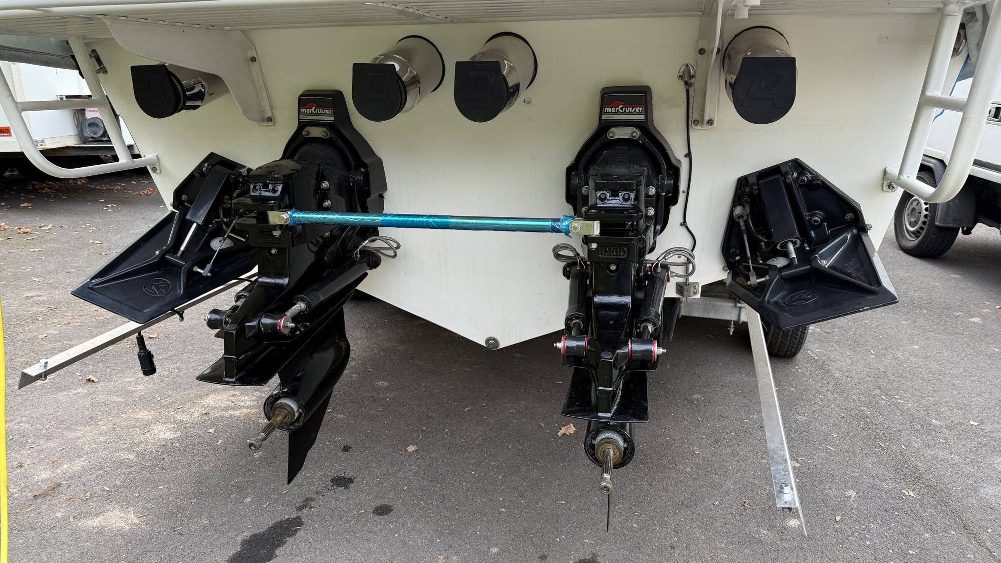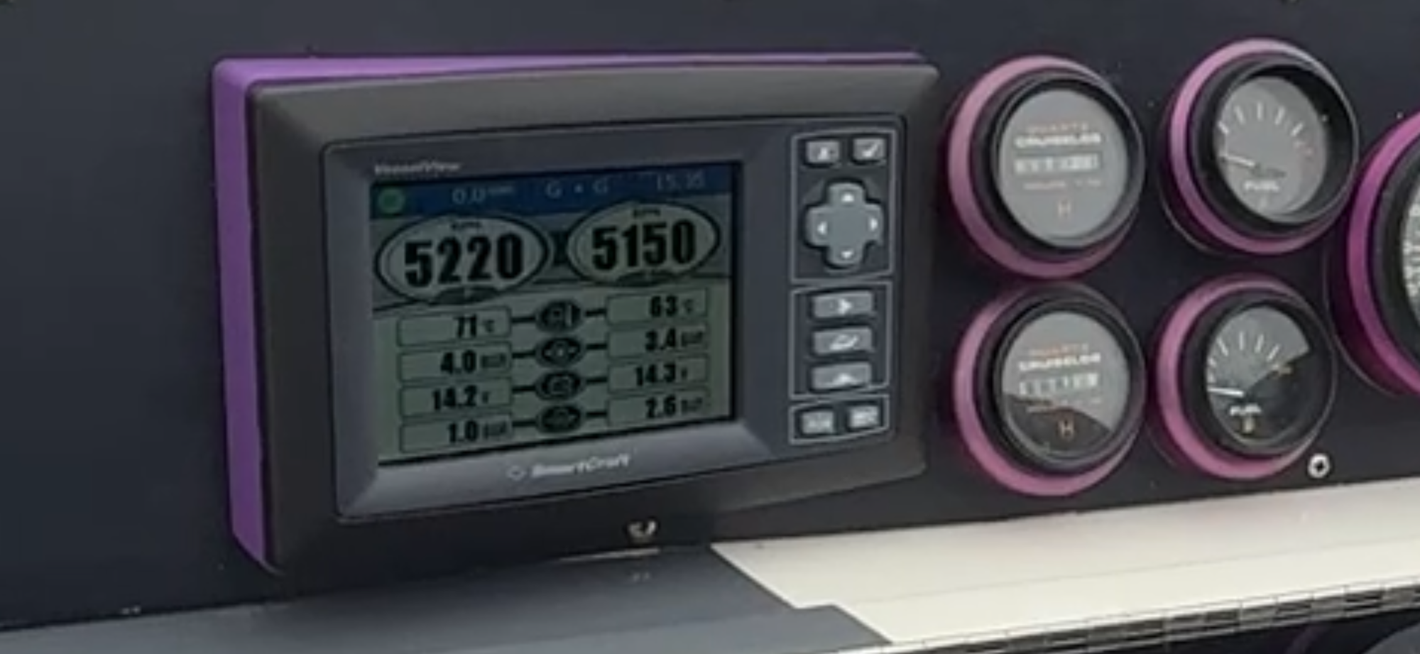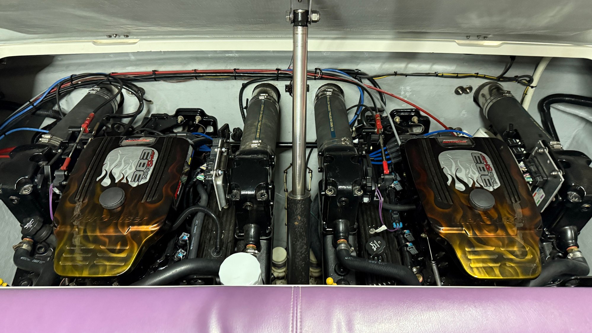 The Navy hull/white deck 38 that was a 525/XR boat was repowered at Hallett boats with new 700s/NXT a few years ago. Boat lives in CA (and was used on Lake Mead when it had water in it). Hull has less than 150 hours on it, 700's probably have less than 30 hours.