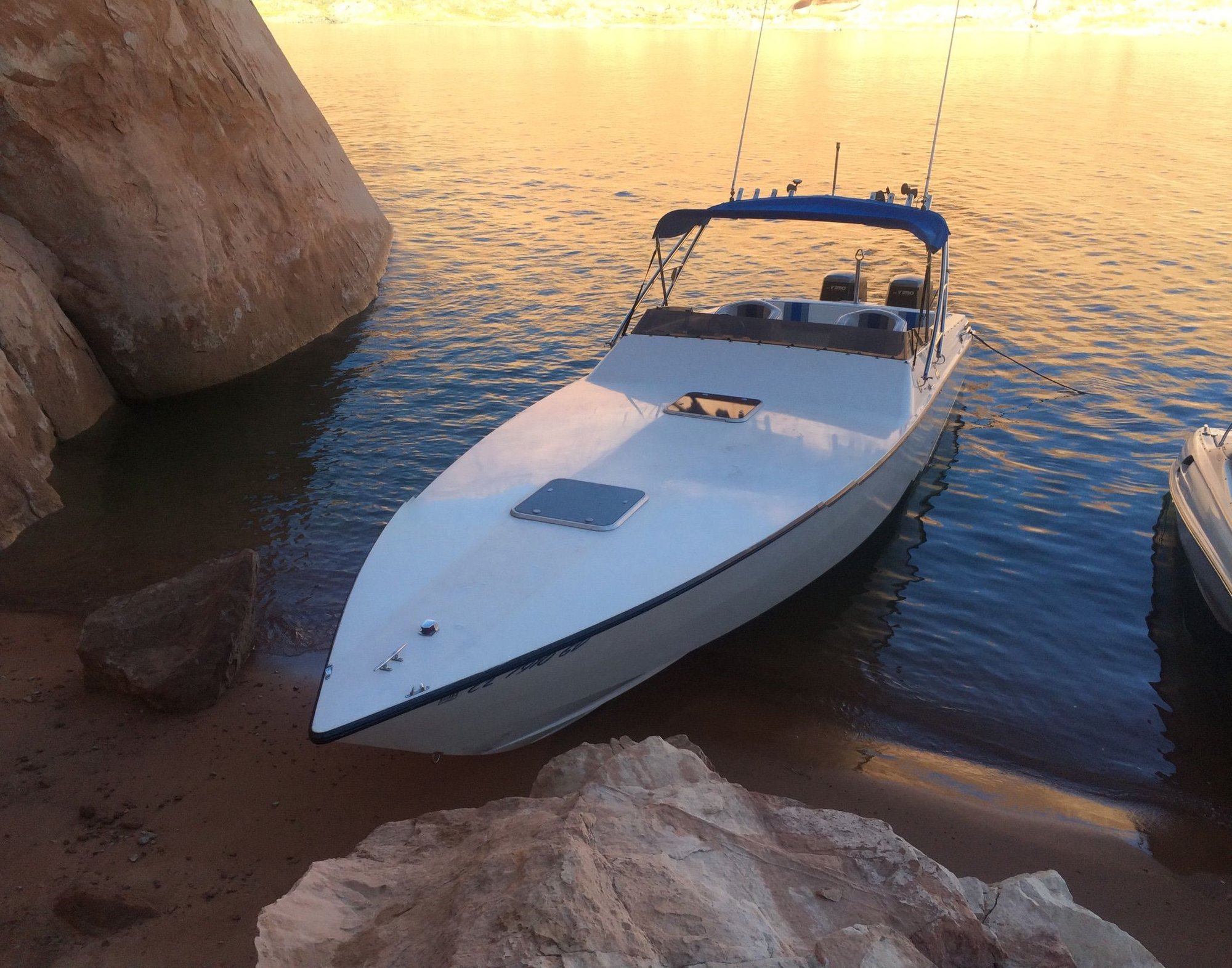 Good luck with the rigging! Great looking Scarab. Your friend, that's been giving you advice, has got a very rare boat. I almost bought a sister boat to his, called 'The Edge'. It was hull number #3 of those David Aronow boats he named Legend 32. It was built for Ritchie Powers by Mark McManus at Apache. Aronow used the Midnight Express 32SS mold, but added a pad towards the transom on most of them. Only 6 were built total and most were open center console.