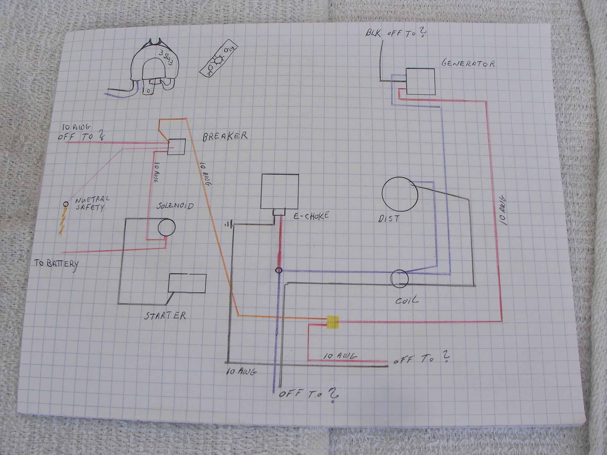 There is a rats nest of wiring, i need help with ignition start -run & charge correctly. i literally need it from battery to a, from a to b, from b to c etc etc the ignition was converted from points to electric. some pictures where im holding wires correspond to the drawing where i wrote "off to ?" Since i dont know if they're going to somewhere or coming in from somewhere https://cimg5.ibsrv.net/gimg/www.off...509ac645b1.jpg https://cimg2.ibsrv.net/gimg/www.off...cc66e92e07.jpg https://cimg4.ibsrv.net/gimg/www.off...dcde3ea041.jpg https://cimg6.ibsrv.net/gimg/www.off...90832e5ae0.jpg https://cimg7.ibsrv.net/gimg/www.off...6fe423db34.jpg Red from alternator spliced, red goes off to? Orange to breaker https://cimg8.ibsrv.net/gimg/www.off...5e120206d5.jpg Red from splice ( previous pic) black from bolt off to ? https://cimg9.ibsrv.net/gimg/www.off...9c07883f7c.jpg Red from breaker off to ? https://cimg0.ibsrv.net/gimg/www.off...0f7c4f9cab.jpg https://cimg8.ibsrv.net/gimg/www.off...11fbe59898.jpg https://cimg9.ibsrv.net/gimg/www.off...844985a5f0.jpg https://cimg0.ibsrv.net/gimg/www.off...501b918fd7.jpg Same drawing different lighting https://cimg2.ibsrv.net/gimg/www.off...03c842d043.jpg this is where the engine is https://cimg3.ibsrv.net/gimg/www.off...4f55a77418.jpg this is what is like when i open the box |
