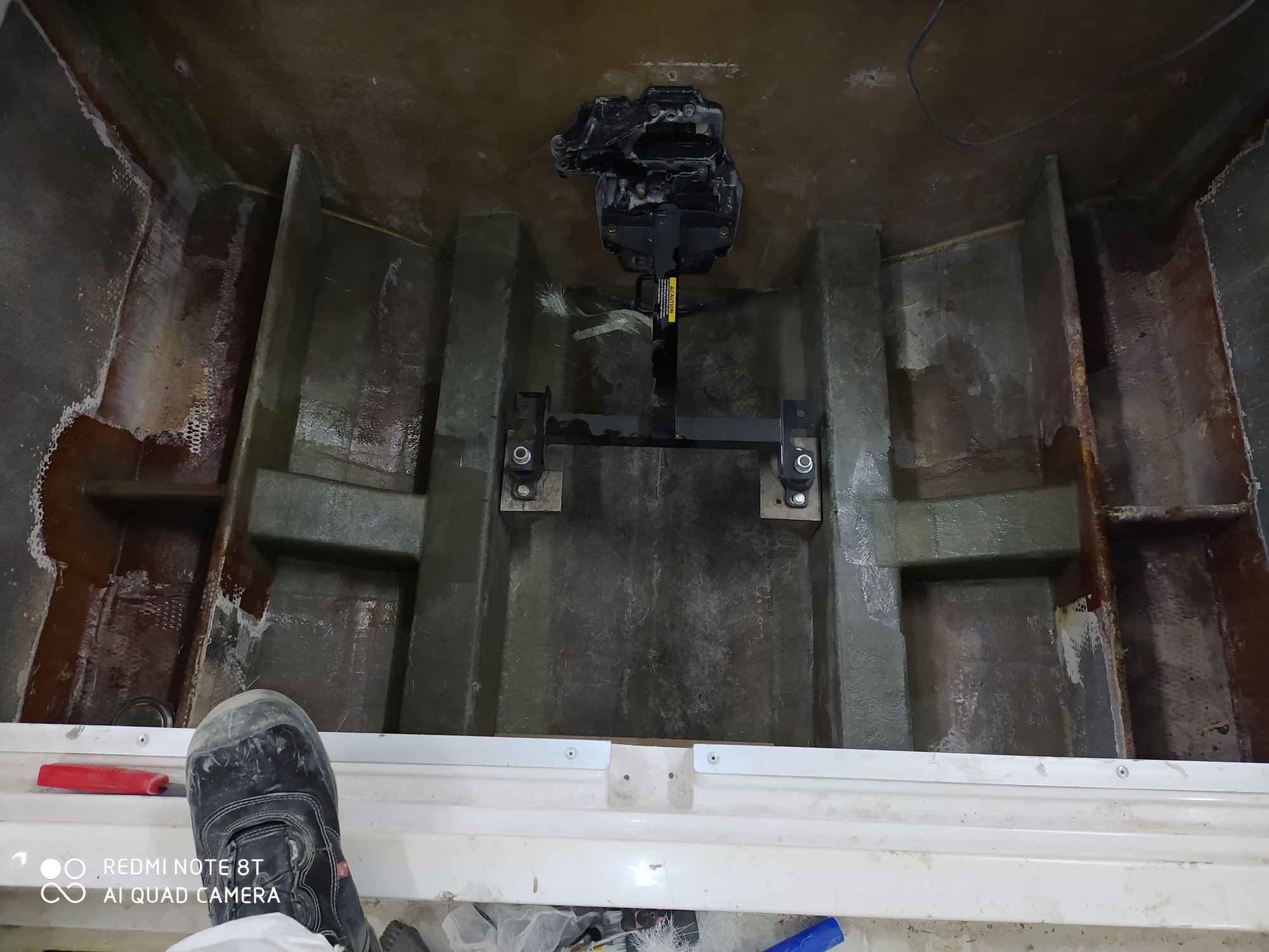 trying to sand the hook away, added 6 layers 450g inside the Hull, plus 4 layers in the corner below the plywood of the transom, should be enough material to sand the hook away.