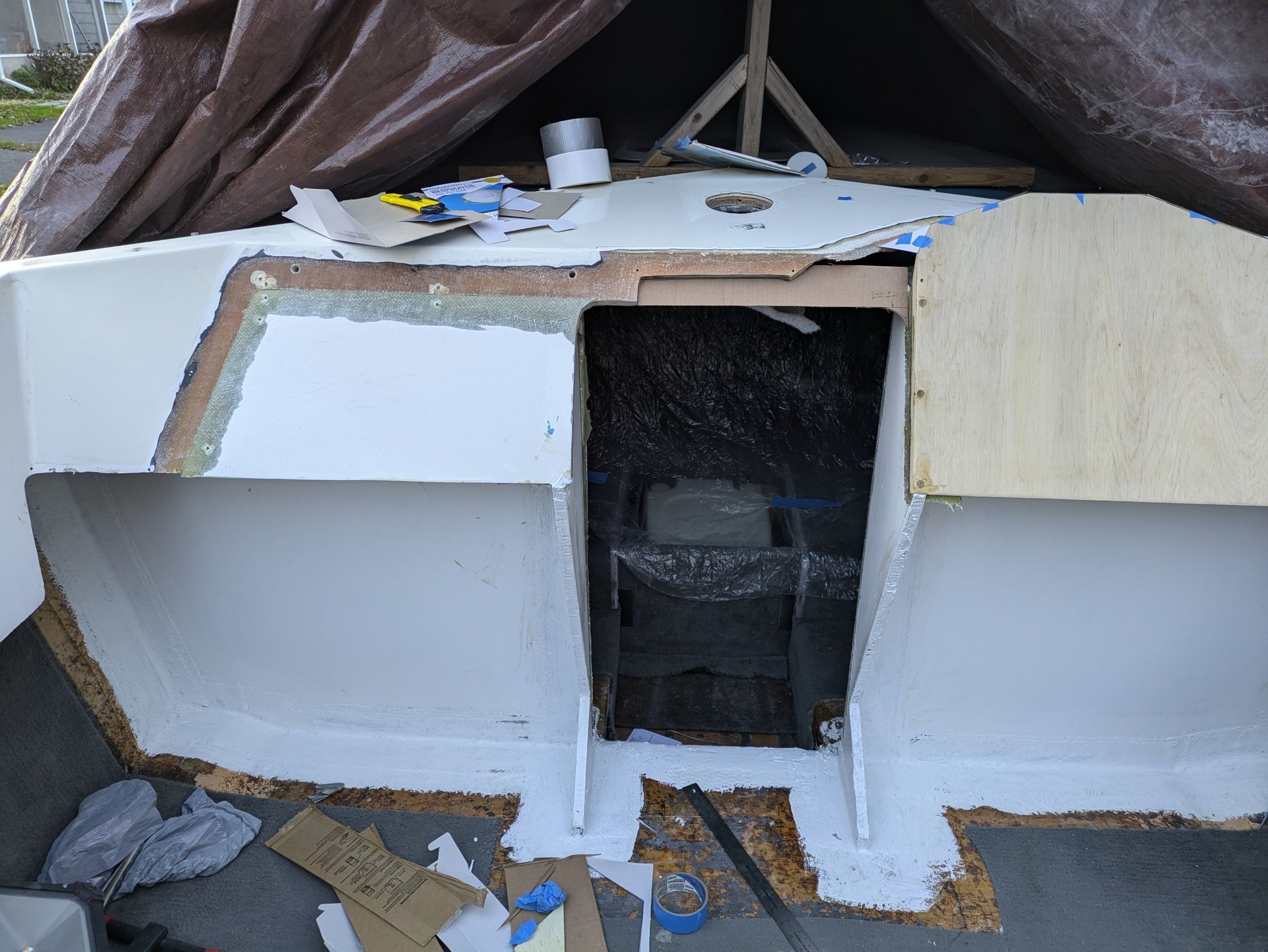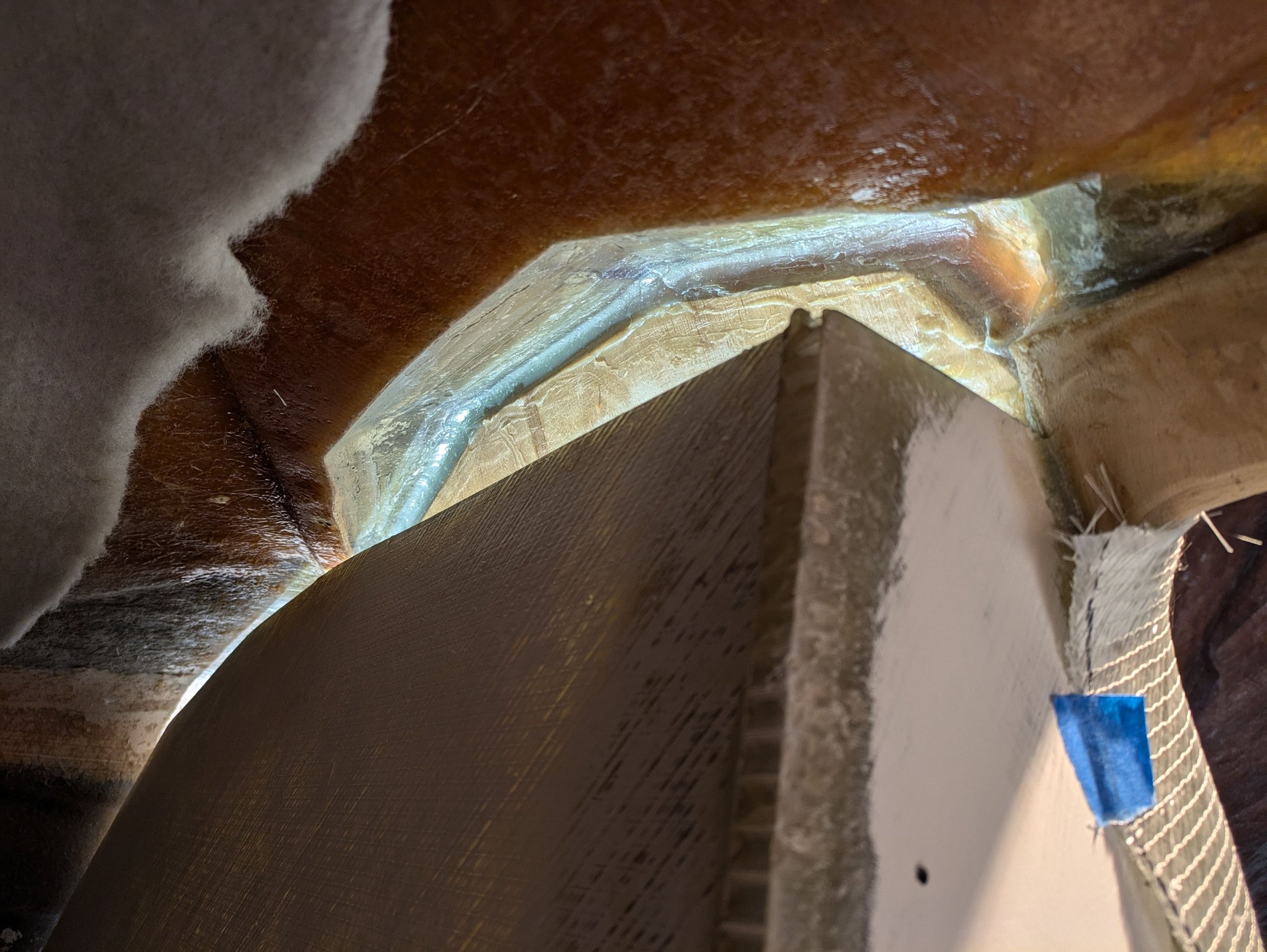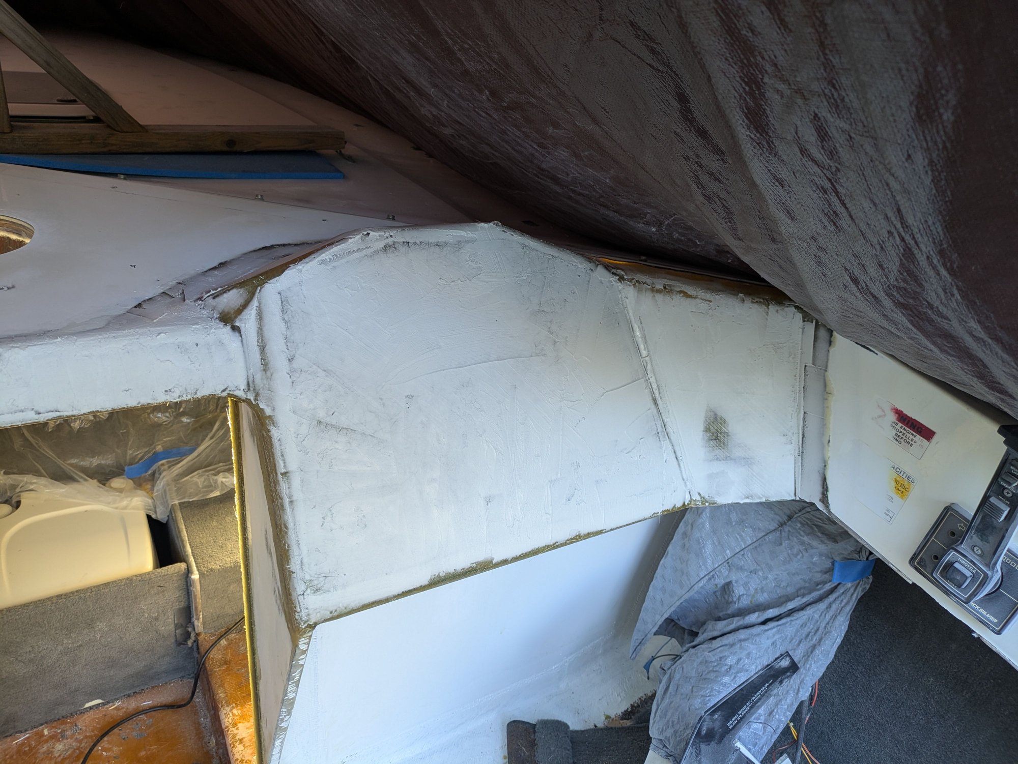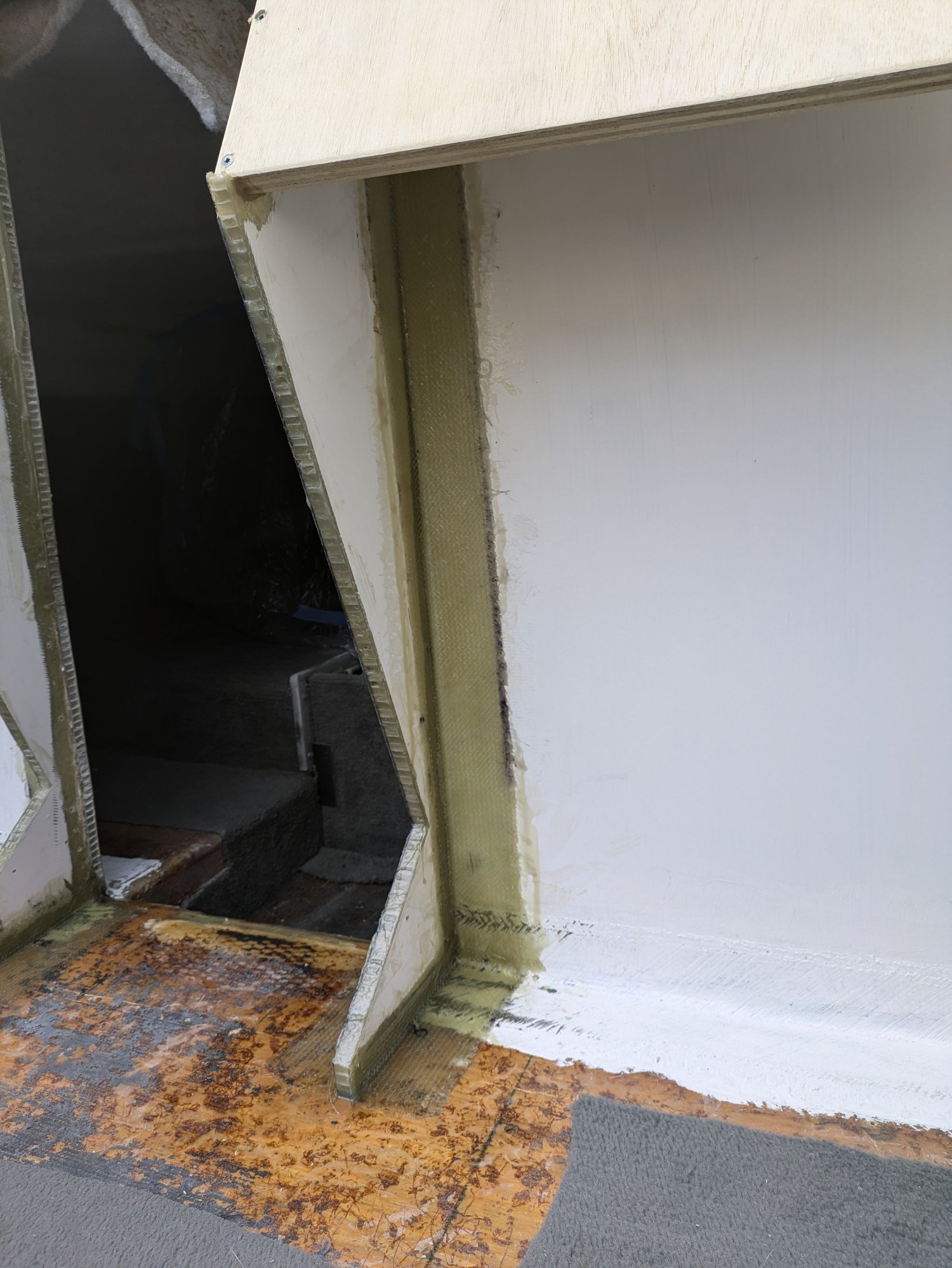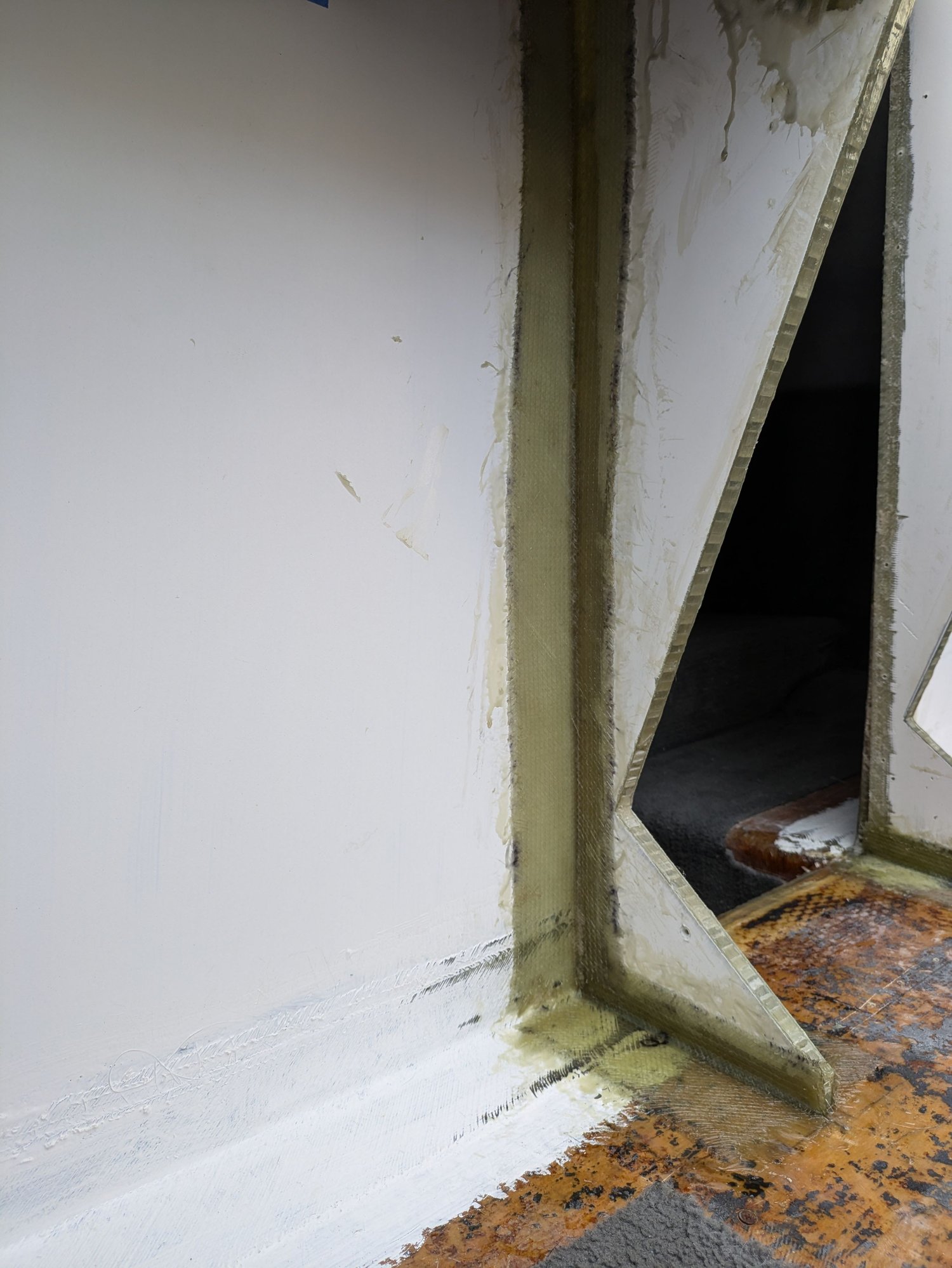 Needed to glass in a little extension here so that my cabin door seals better when installed. I guess my bulkhead panels weren't lined up 100% with one another. Why did I ever assume that the factory panels were square to one another? Lol