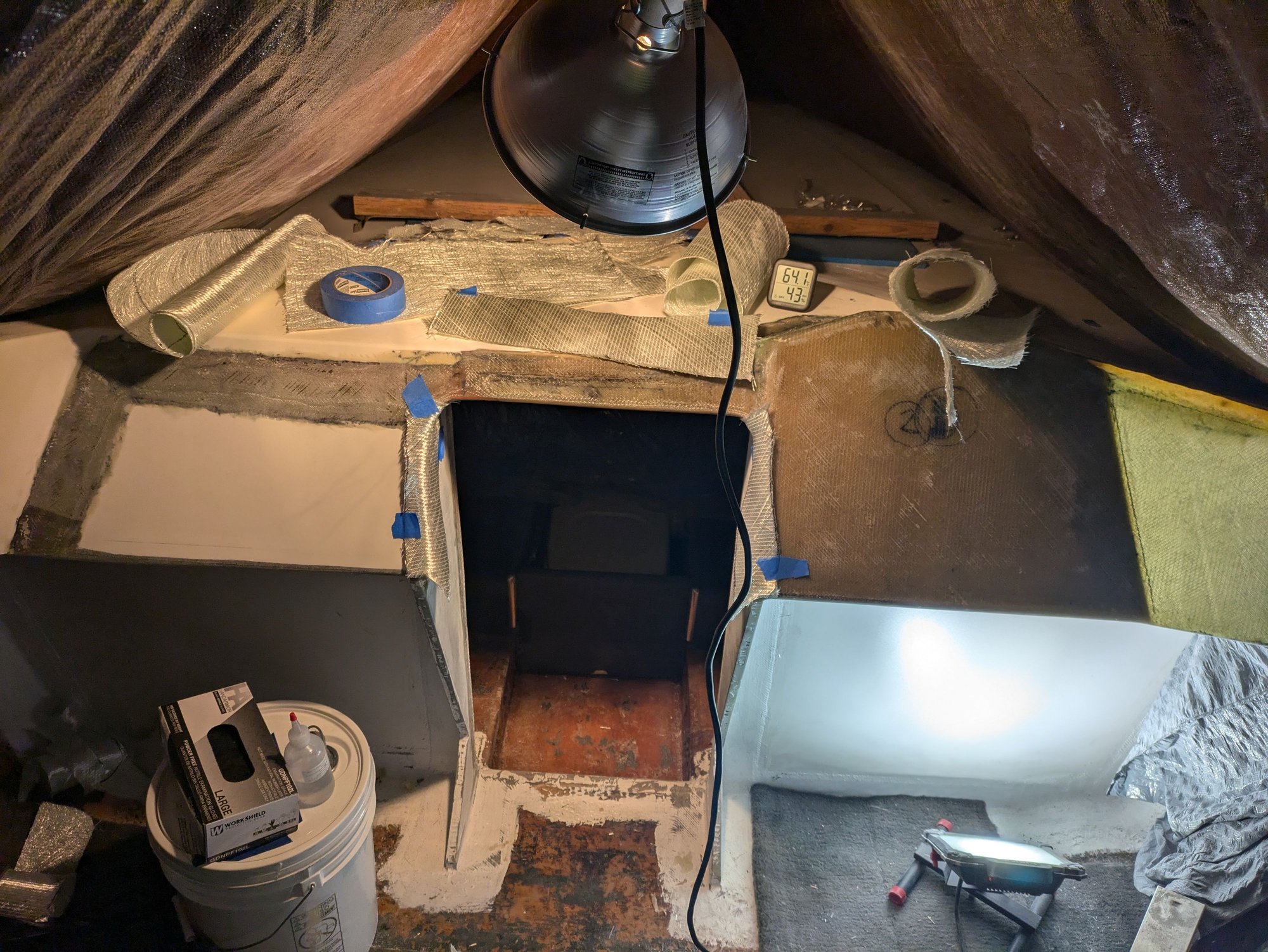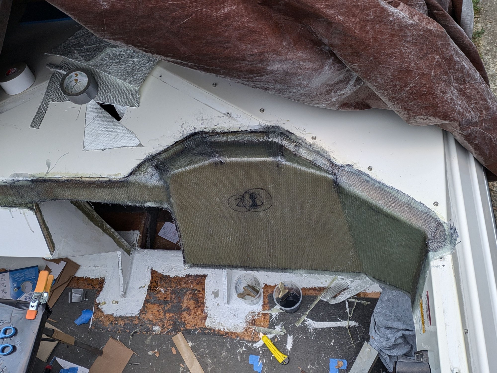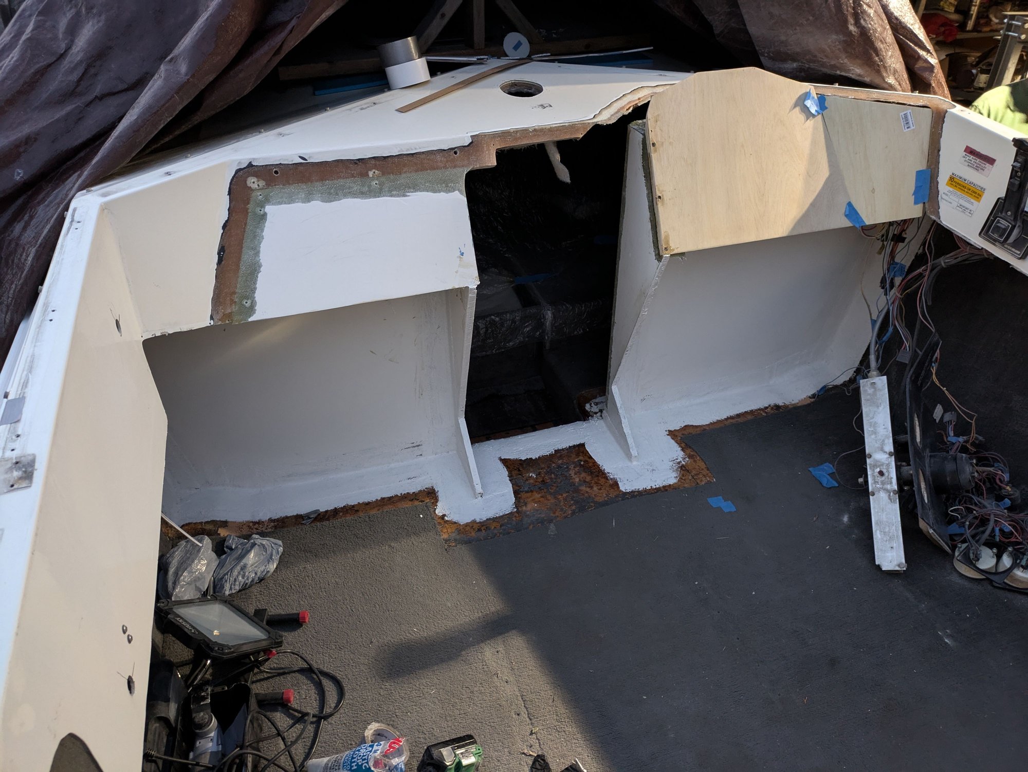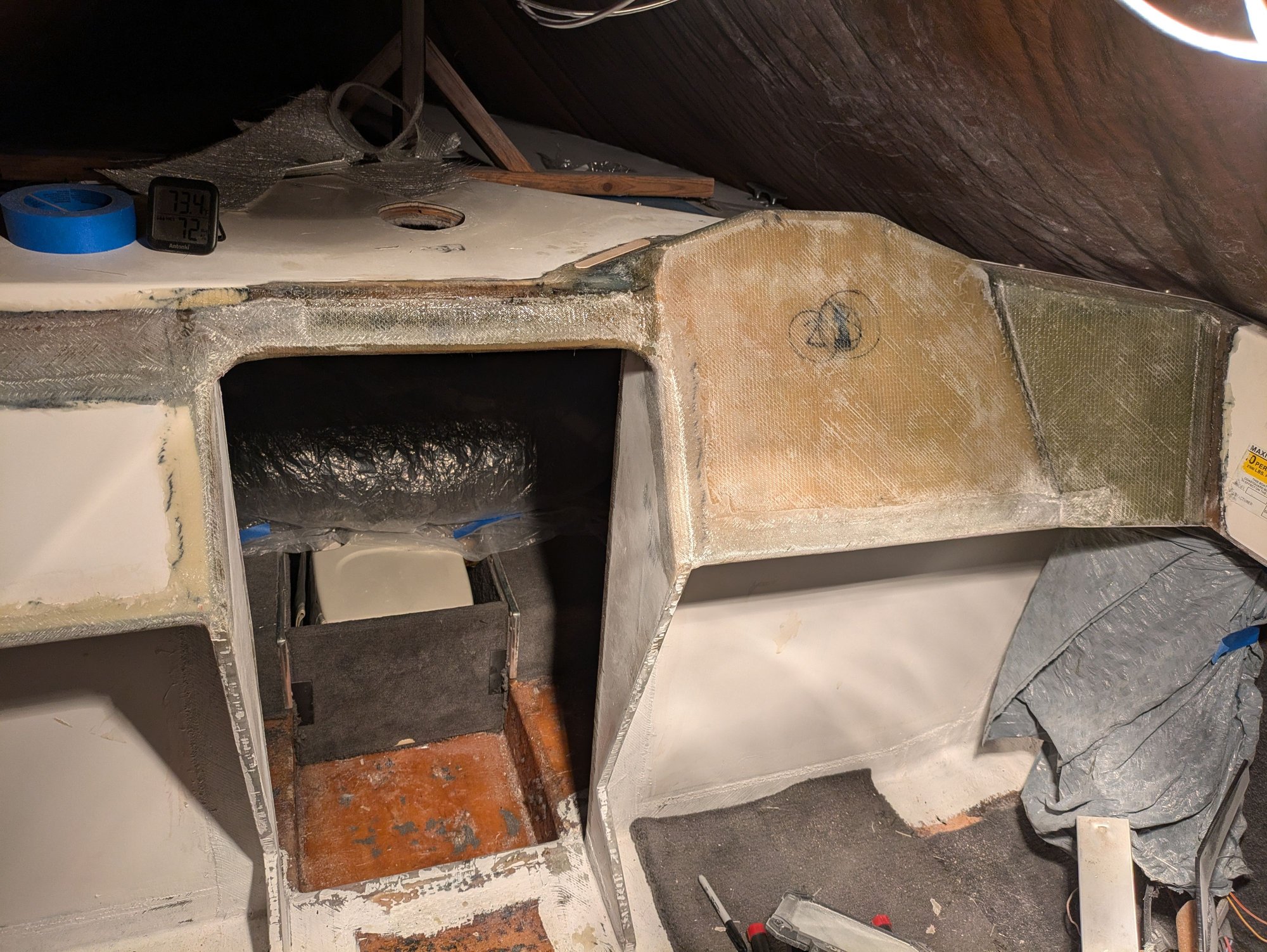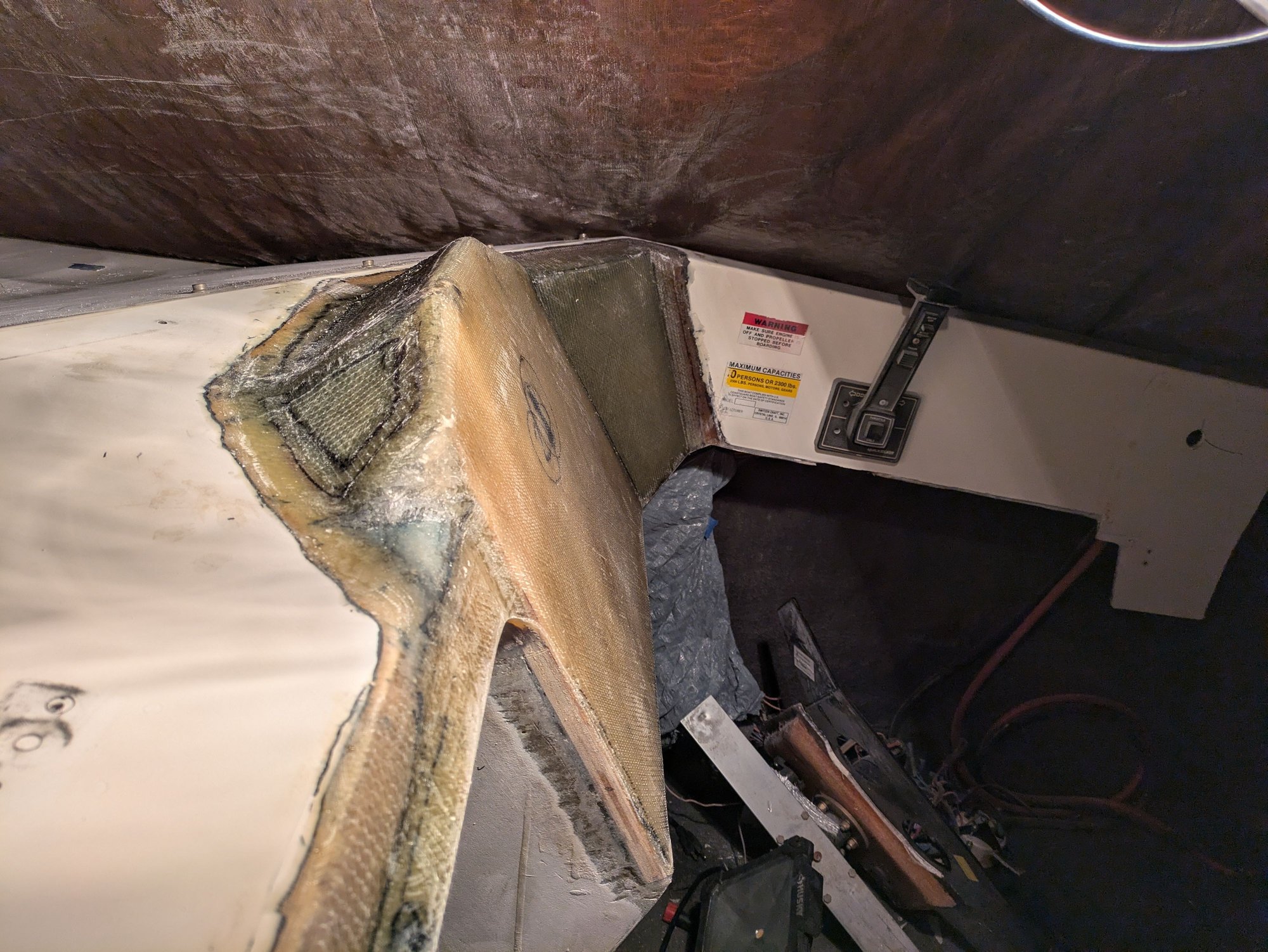 Needed to glass in a little extension here so that my cabin door seals better when installed. I guess my bulkhead panels weren't lined up 100% with one another. Why did I ever assume that the factory panels were square to one another? Lol