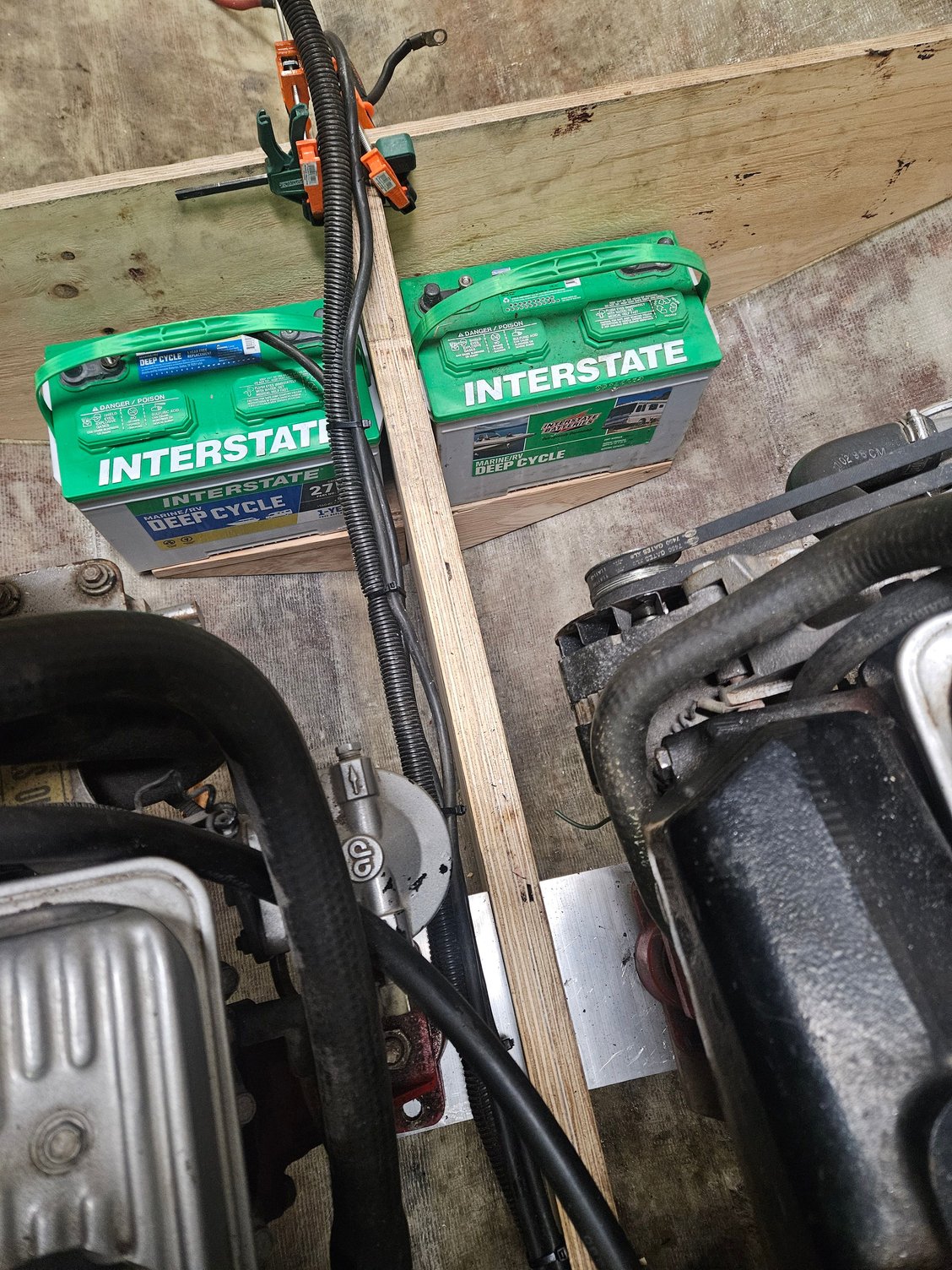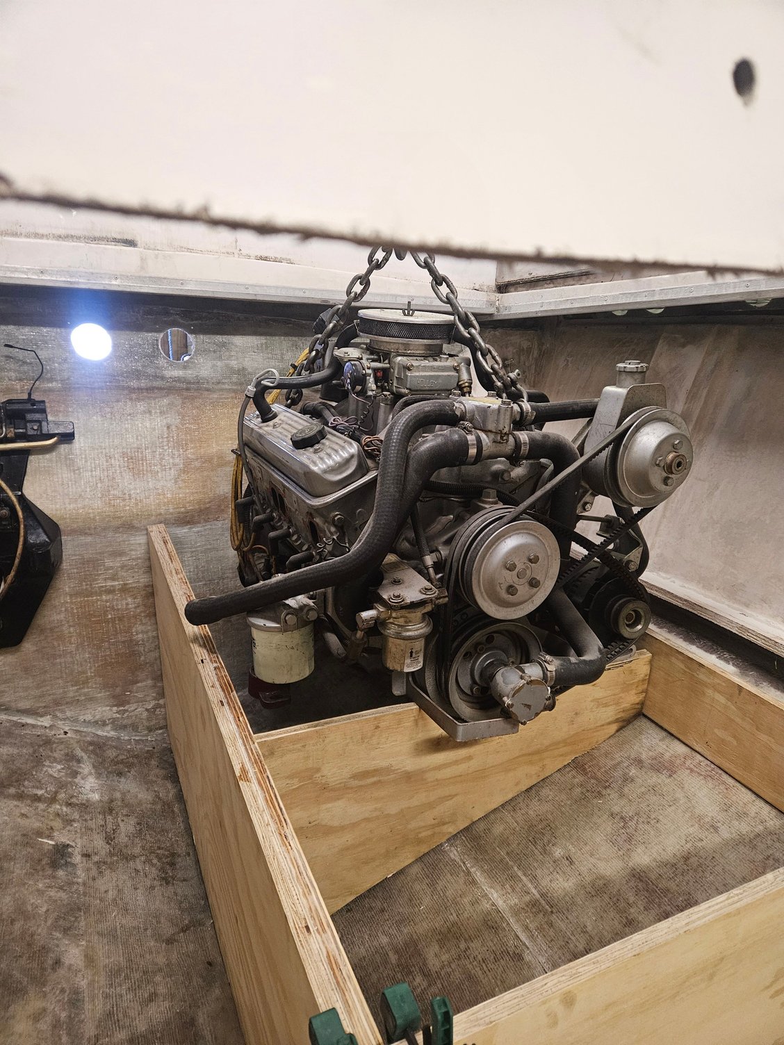 These were originally volvo penta engines and I have been having a bit if a hard time getting them set up for the pre alpha mercruiser drives. I had 1 pre alpha and 1 gen 1 alpha 1 bellhousing that I thought were the same so I installed both, turns out the mounting holes to the transom assembly are different. Got another pre alpha bellhousing to fix that issue. Then I ordered an alpha 1 gen 1 coupler because the pre alpha couplers that I had bolt directly to the crankshaft bolt pattern did not line up. Turns out volvo Penta used the smaller 12 3/4" flywheel vs. The 14" mercruiser uses. Out of frustration i cut and redrilled the gen 1 coupler to fit the volvo penta flywheel only to find the bellhousing has 2 dimples in it that hit the coupler. Angle grinder fixed that issue, will probably weld some patch plates in when i pull the motors to glass the stringers in. I have now found that mercruiser used the 12 3/4" flywheel on some 4 cylinder engines so plan on ordering a coupler made for that.