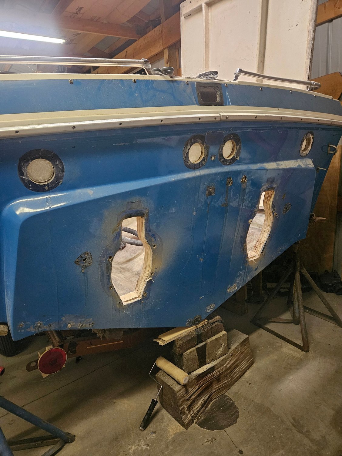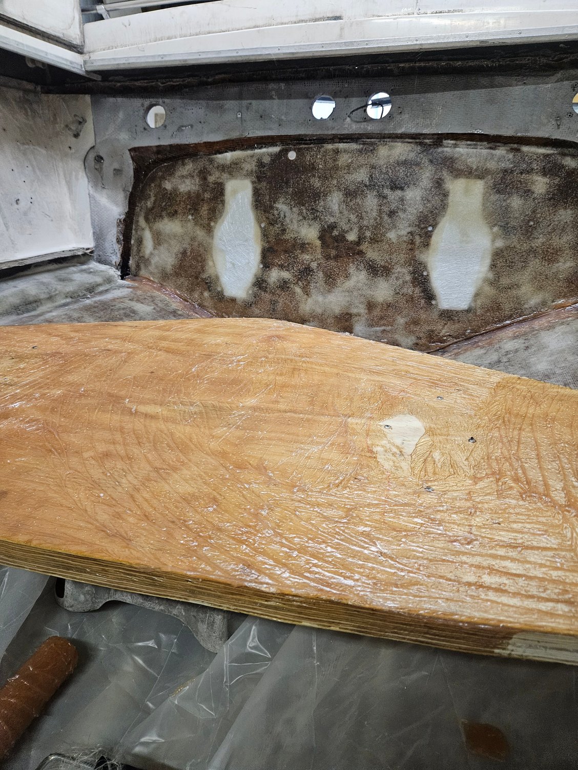 Really nice work, I am doing a 1977 30ft scarab, did transome and stringers(kinda), switched from trs and merc2 to Volvo dp drives. Mine came with Sbc too, doing 383, I am super impressed with how quickly you have done all this work, I am on year 5 but first motor is ready and second going to machine shop in February.