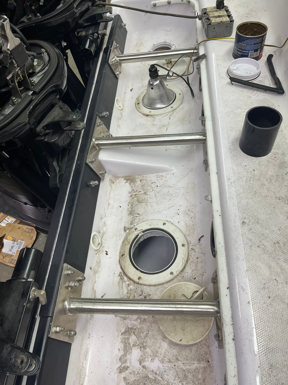 Next was to reinforce transom, there were some splash well corner stress cracks so they would be addressed when the brackets were done. SS 316