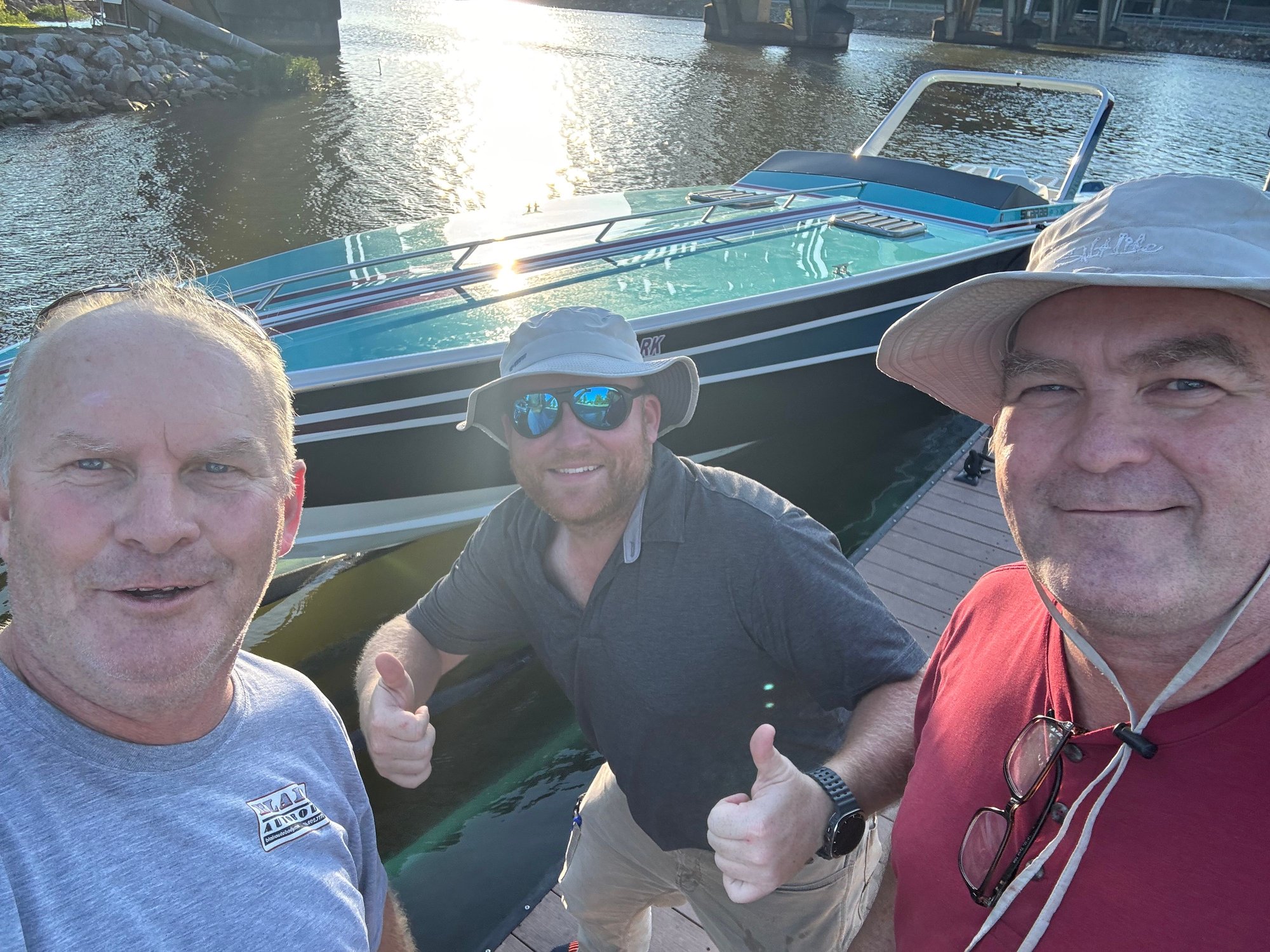 Boat ran good today, saw 87 downwind and 85 upwind. Shon cleared the more impressive number off the speedo before I took a photo of it😆 This is the first time Brian has ridden in the boat. He was a big help on those cold winter nights years ago we’d be doing hours upon hours of rot removal and glass work knowing the goal was a long way off. It was cool to have the three amigos in the boat.