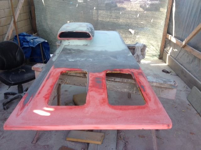 A little more progress got the rear half of the deck gelcoted white the fore deck will get paint so that we can save the Scarab logo on the fore deck. and the second hatch is in primer. Regards Dan