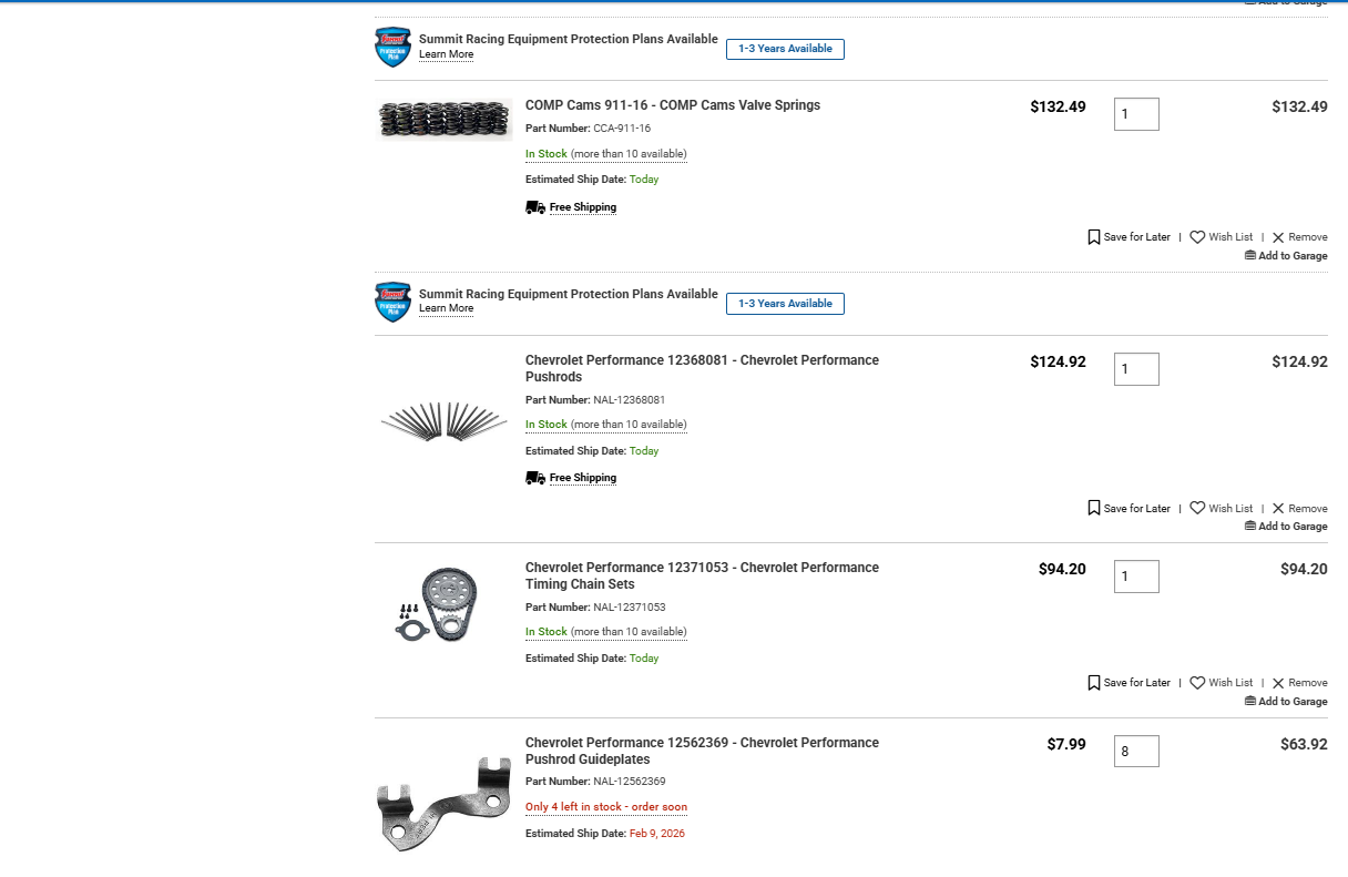 Parts list below. Some folks find the comp lifters to be noisy and agree the GM performance Part lifters seem to be the way to go. Obviously pick a cam. All of these get you near 500 hp.