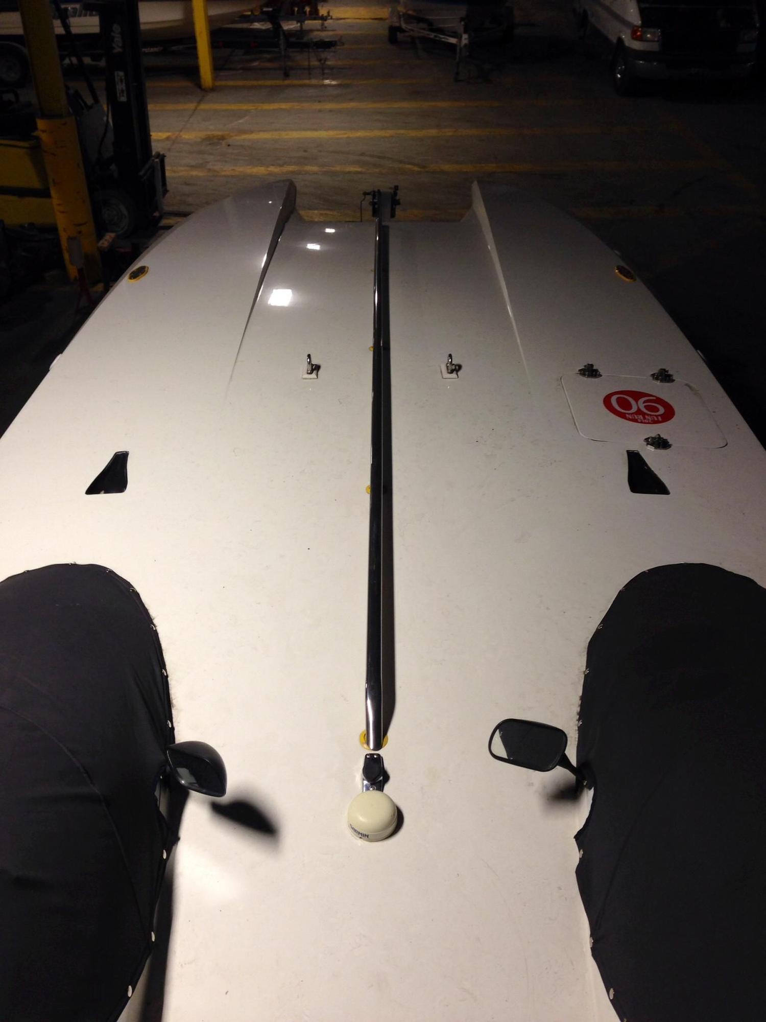 Flat deck, twin canopy,race, added flotation starboard.