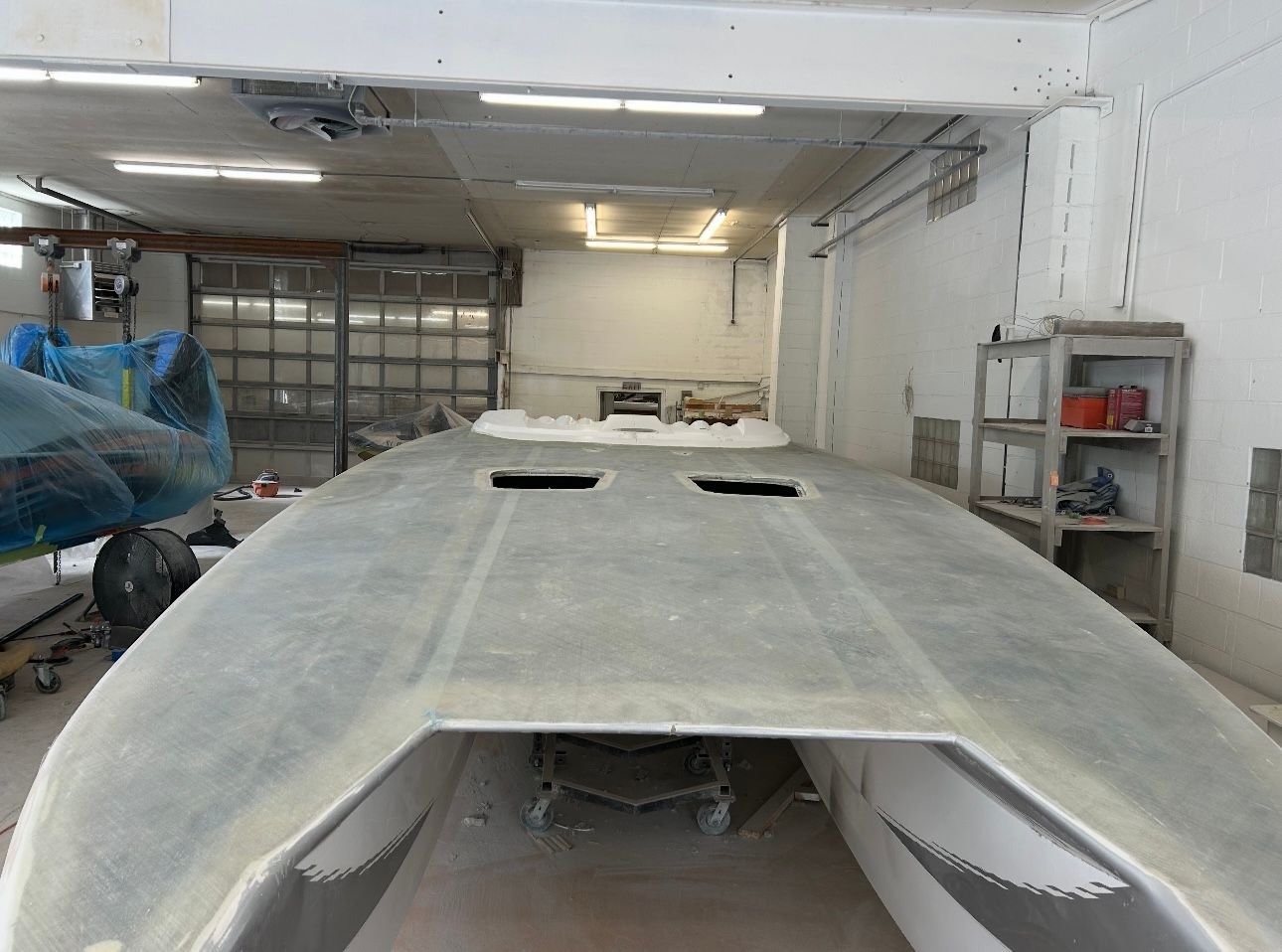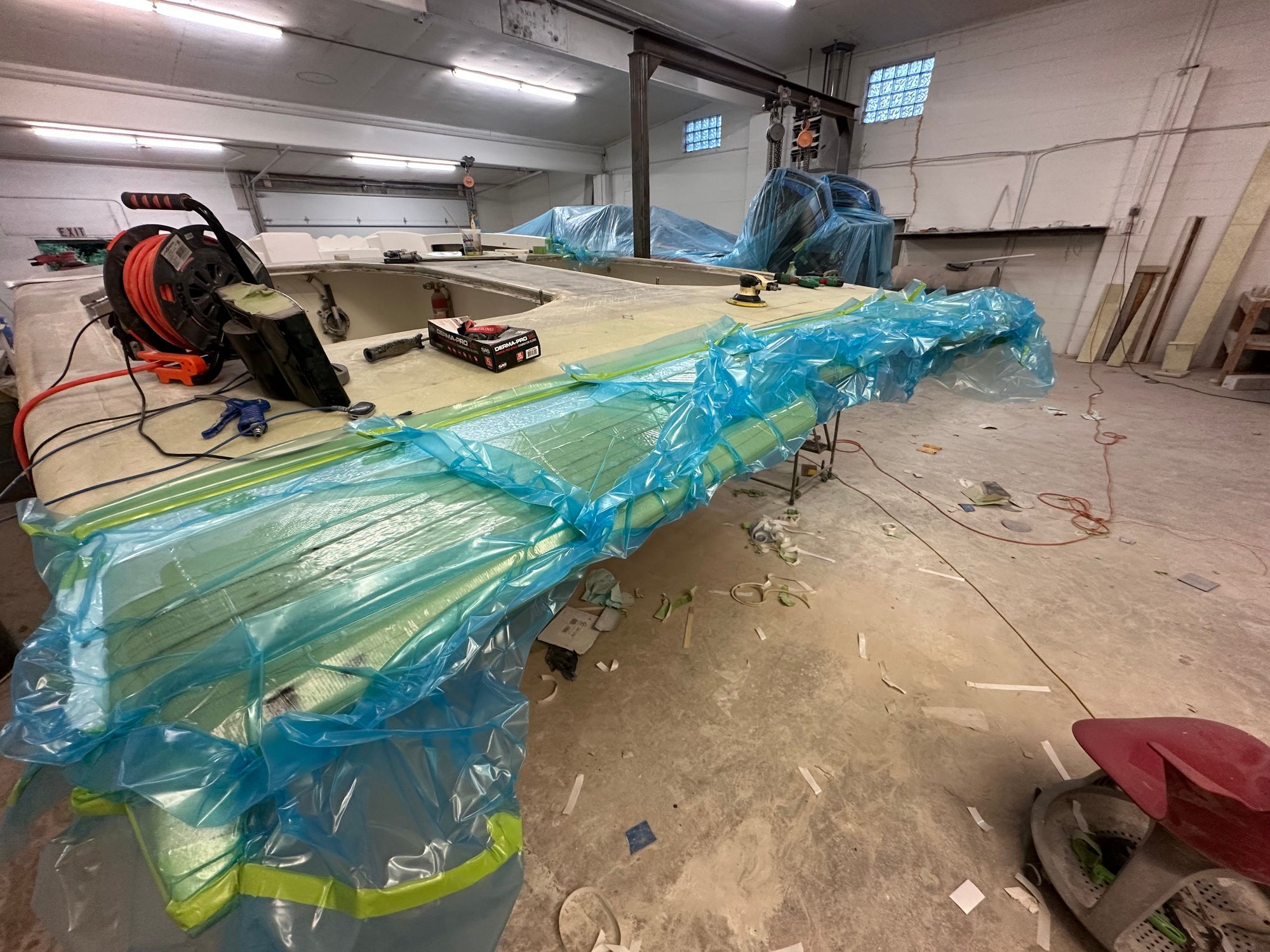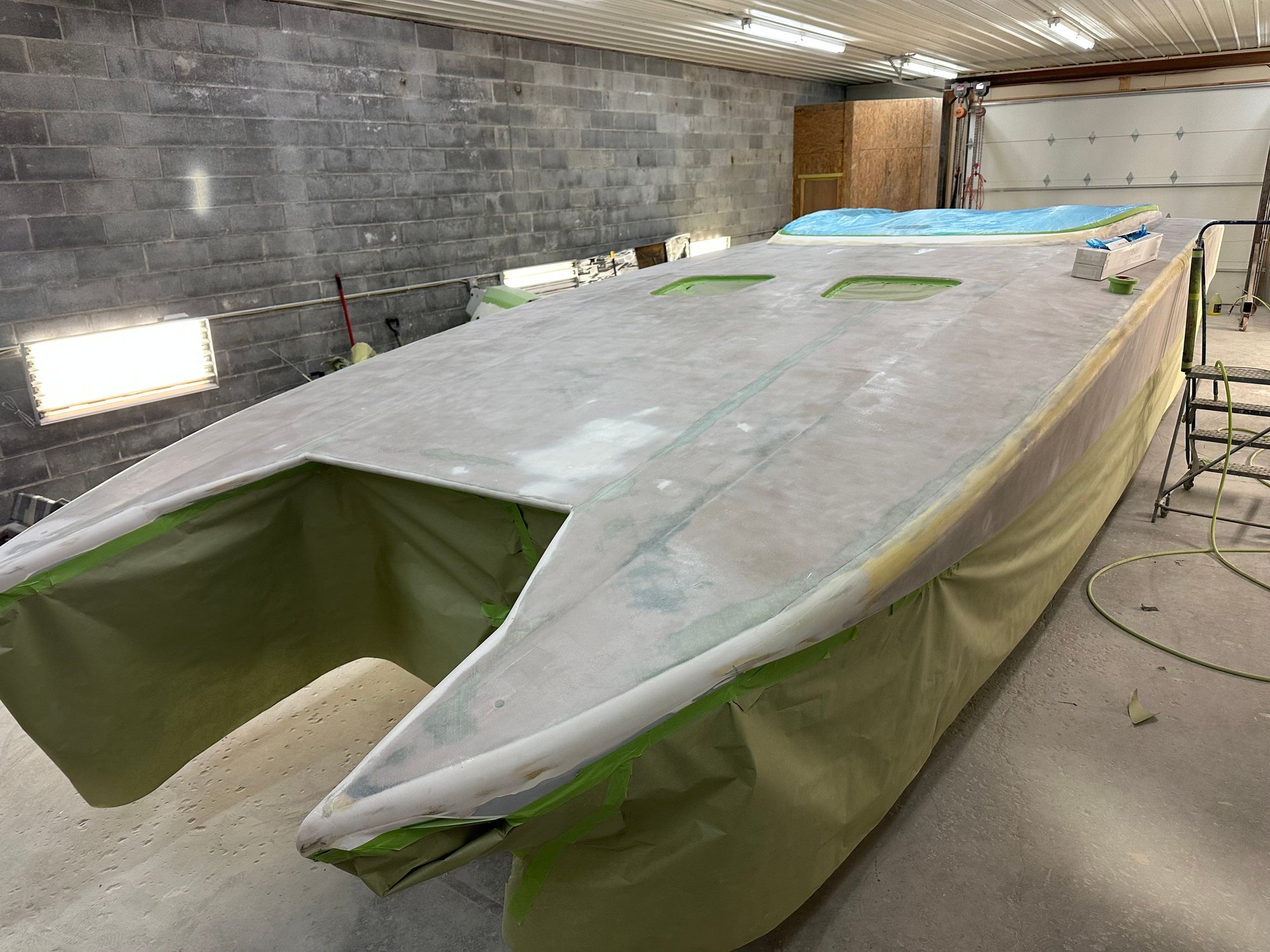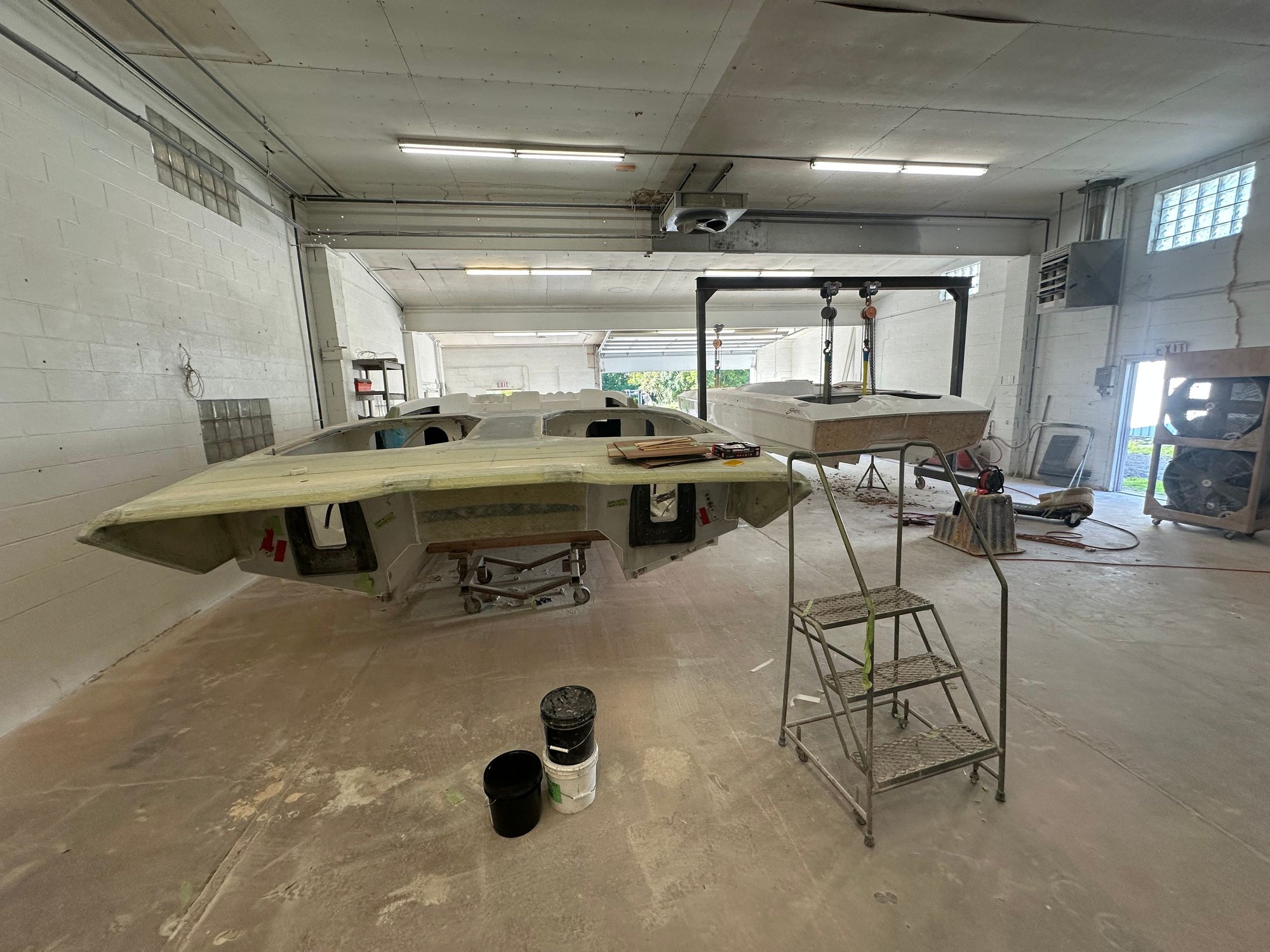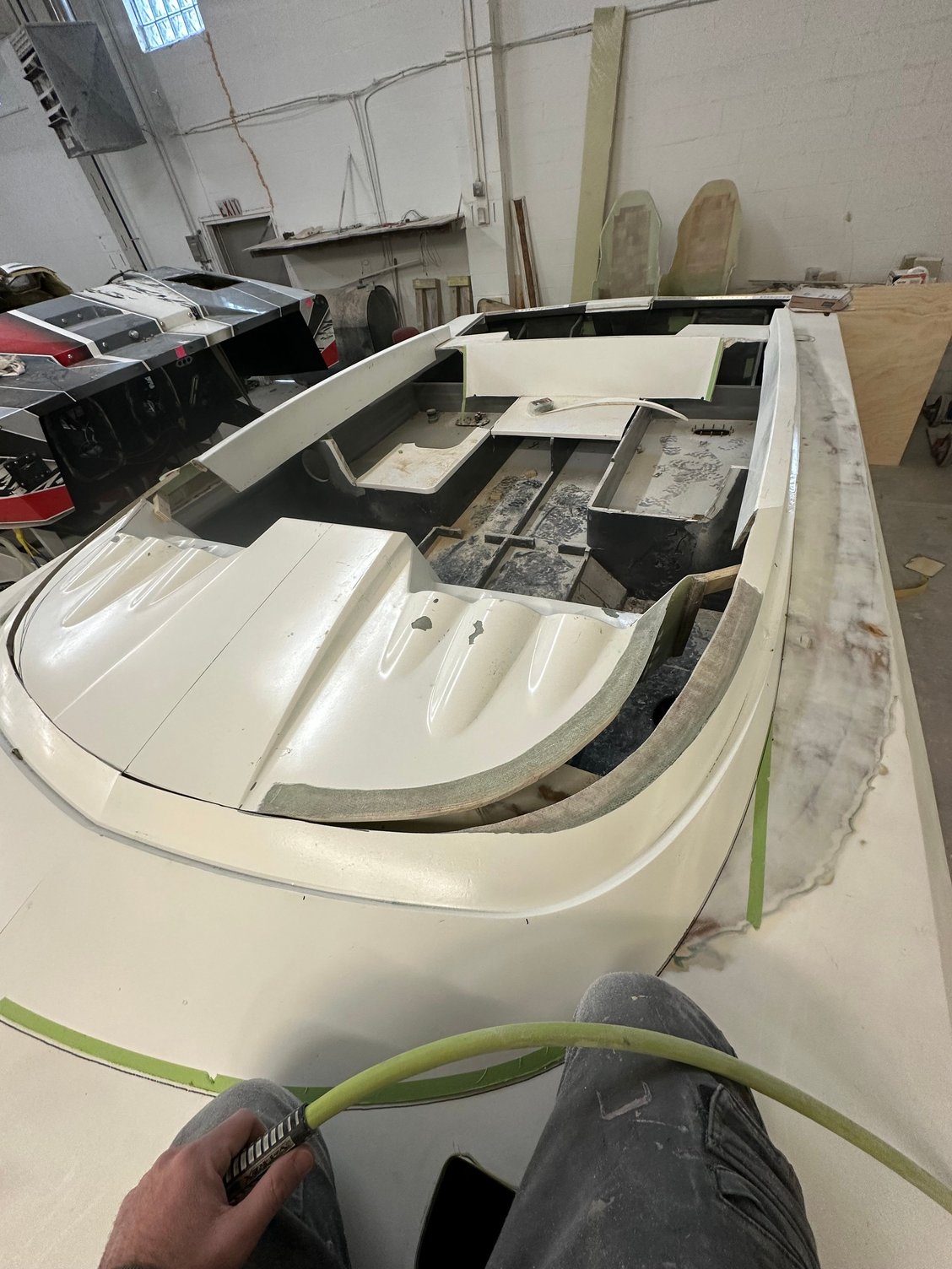 big update. She’s all the way in primer. Full bodywork on deck sides and bustle. Full new cheese Matt. And primer now. Going to get the sub floor in and keep it moving.
