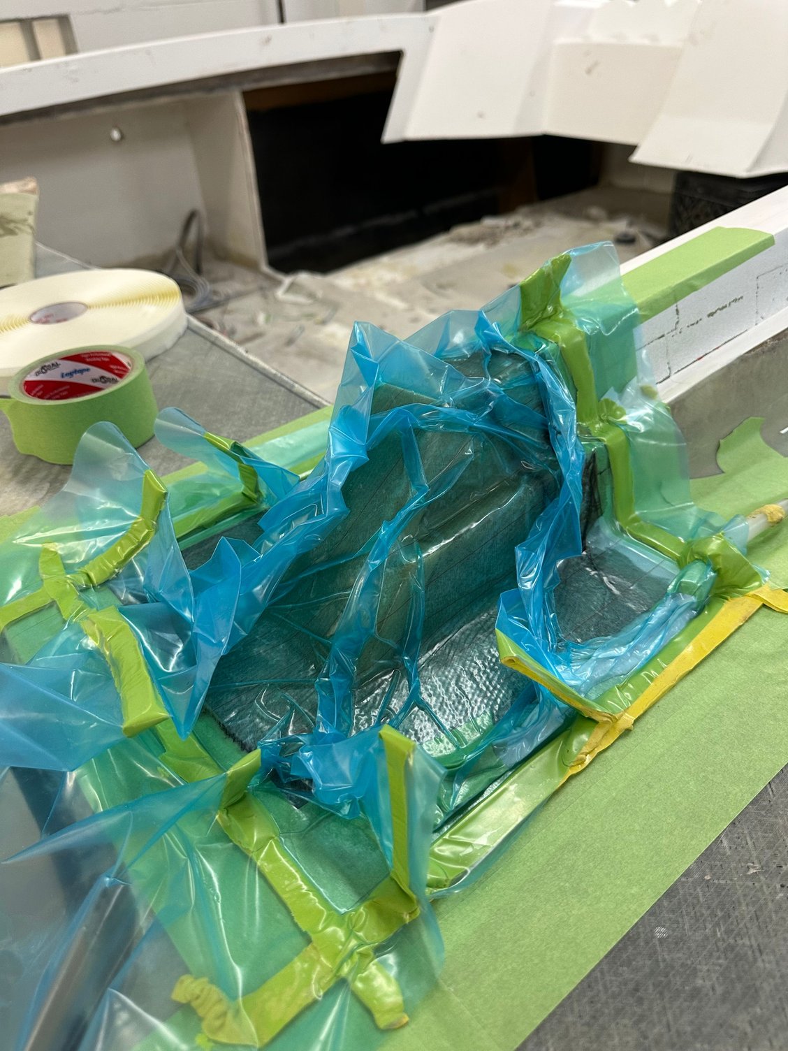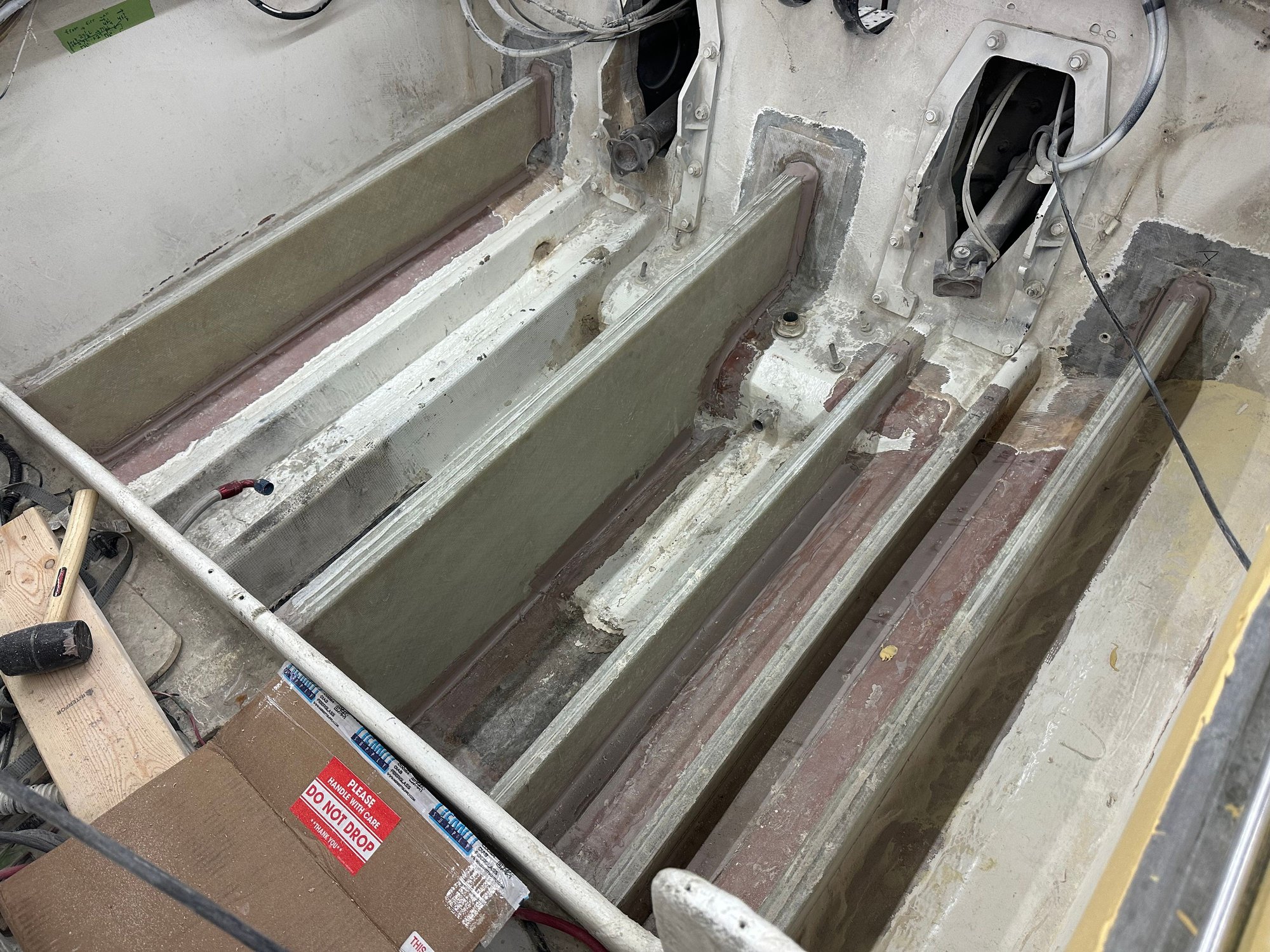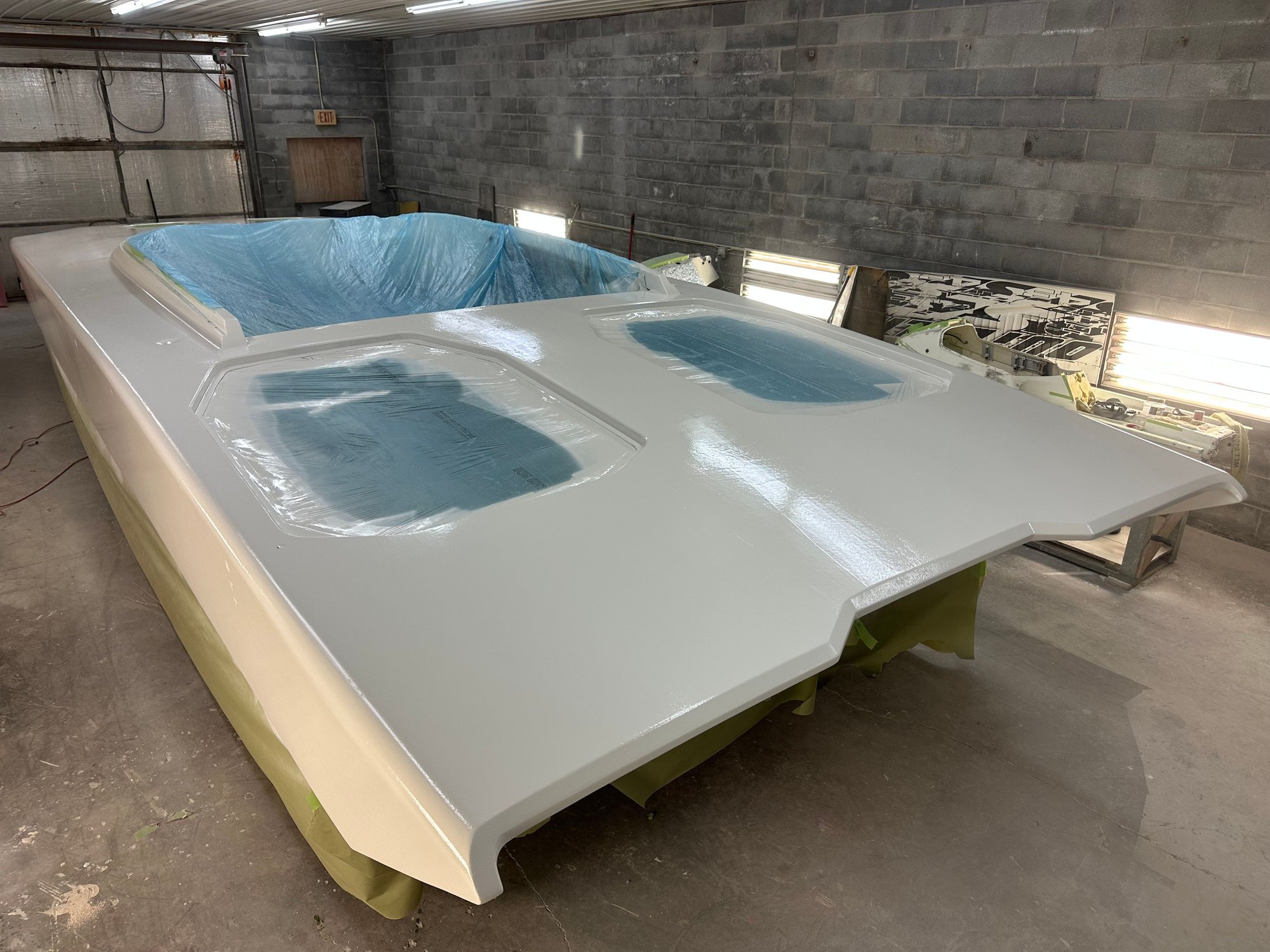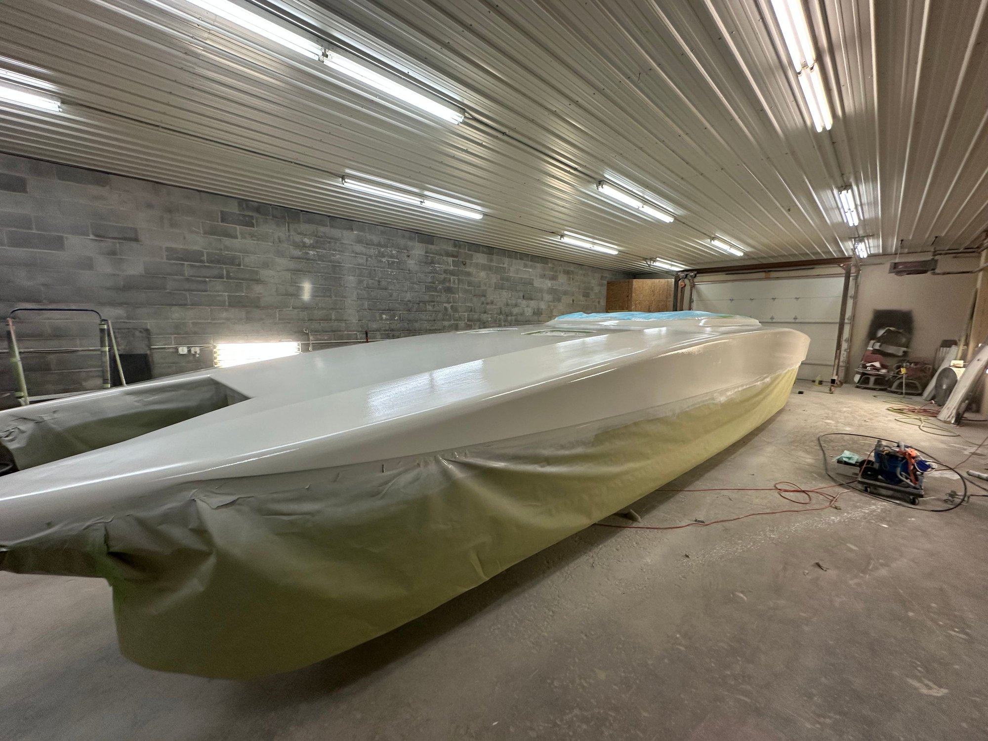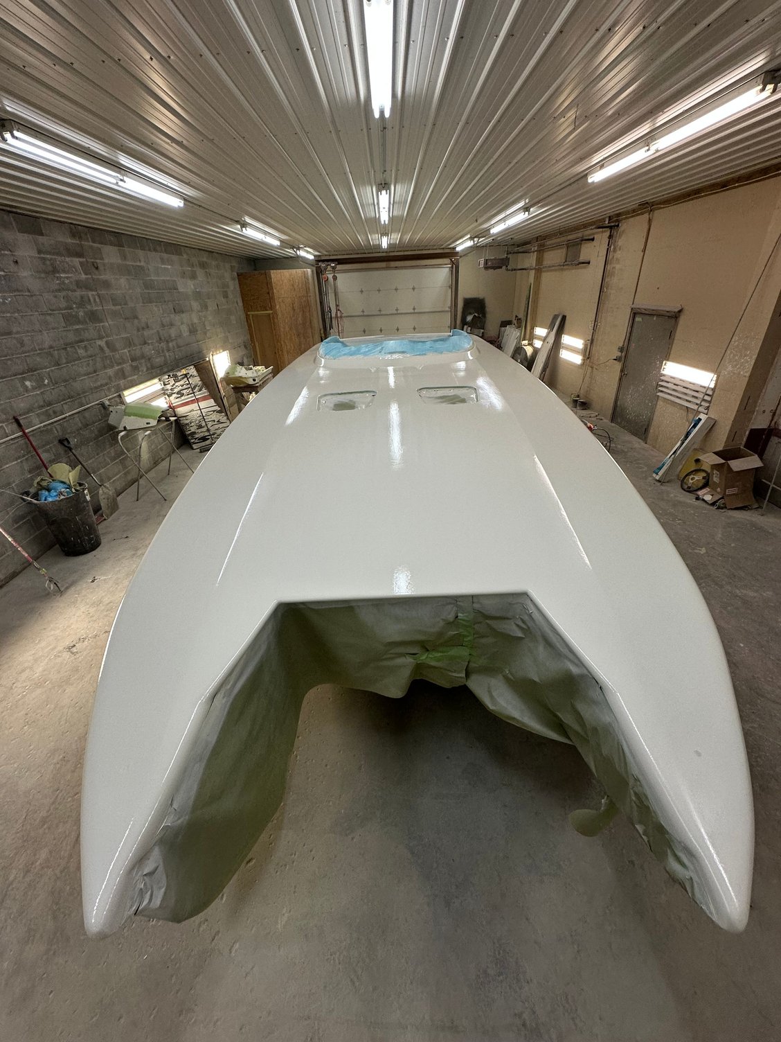 big update. She’s all the way in primer. Full bodywork on deck sides and bustle. Full new cheese Matt. And primer now. Going to get the sub floor in and keep it moving.