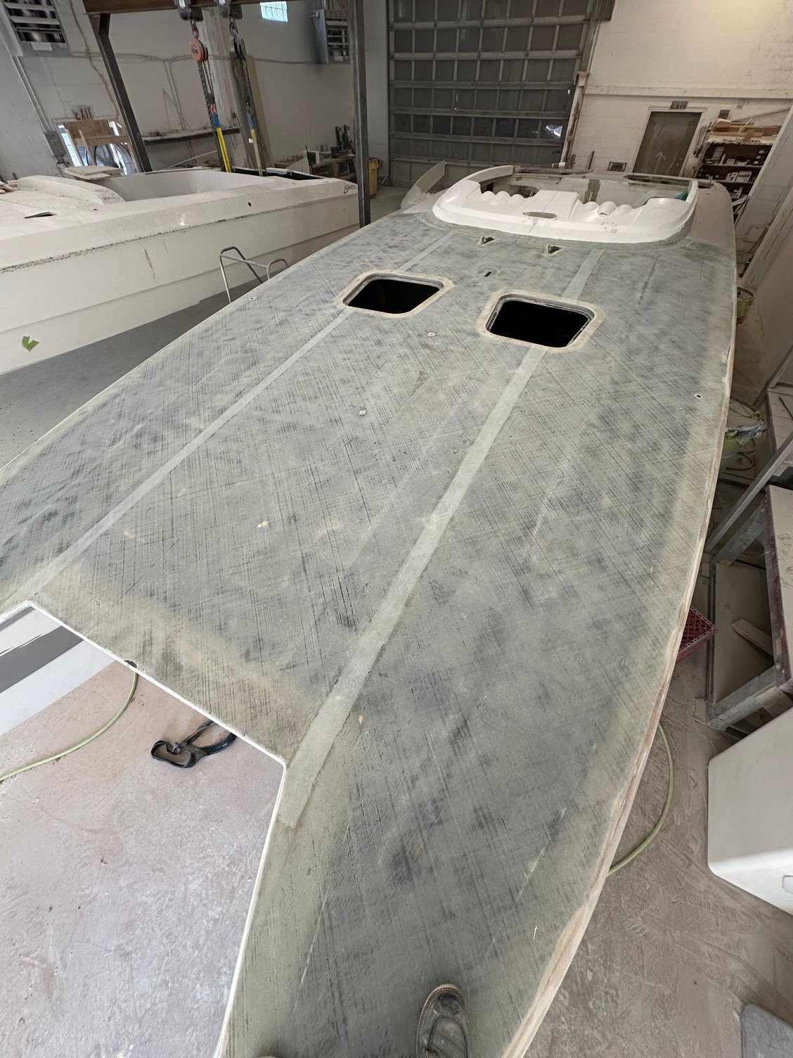 skinning the whole deck to chase the low spots. This deck was so hammered from one of the previous shops who stripped the deck. Going to sand 90% of it off. Boy do my knees hurt after today !