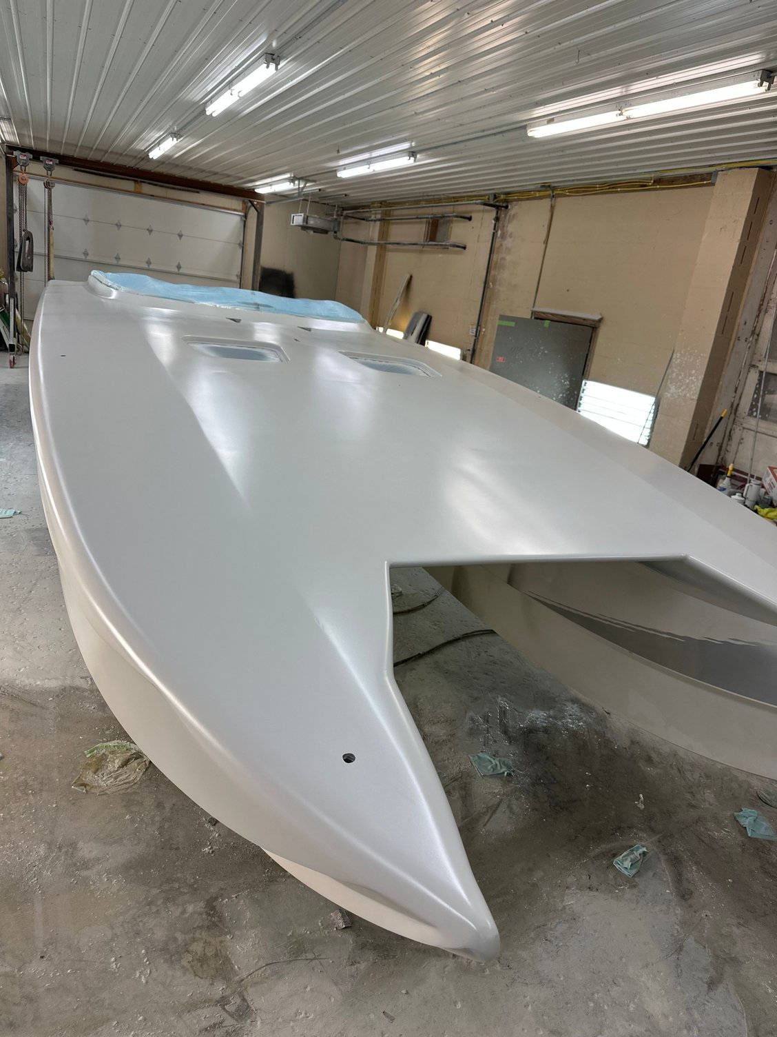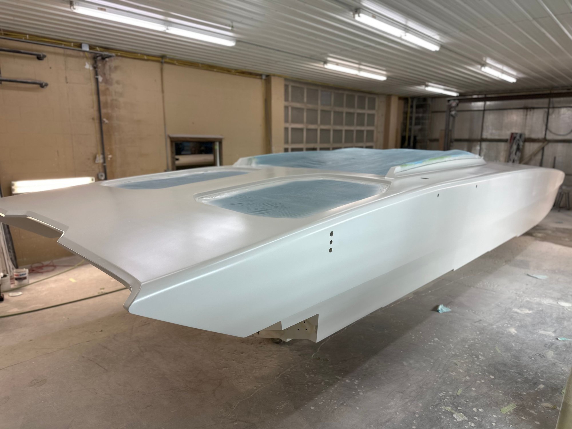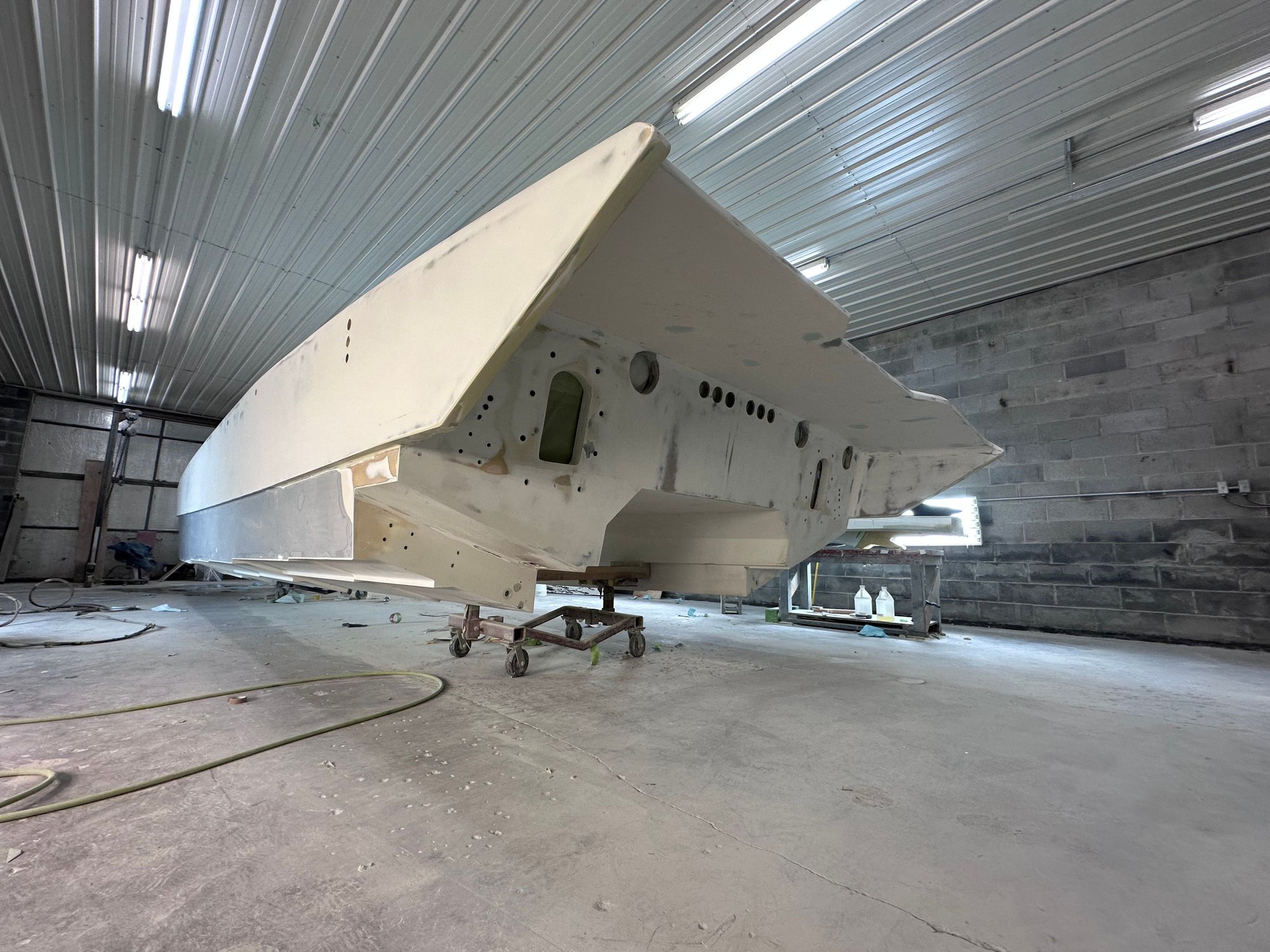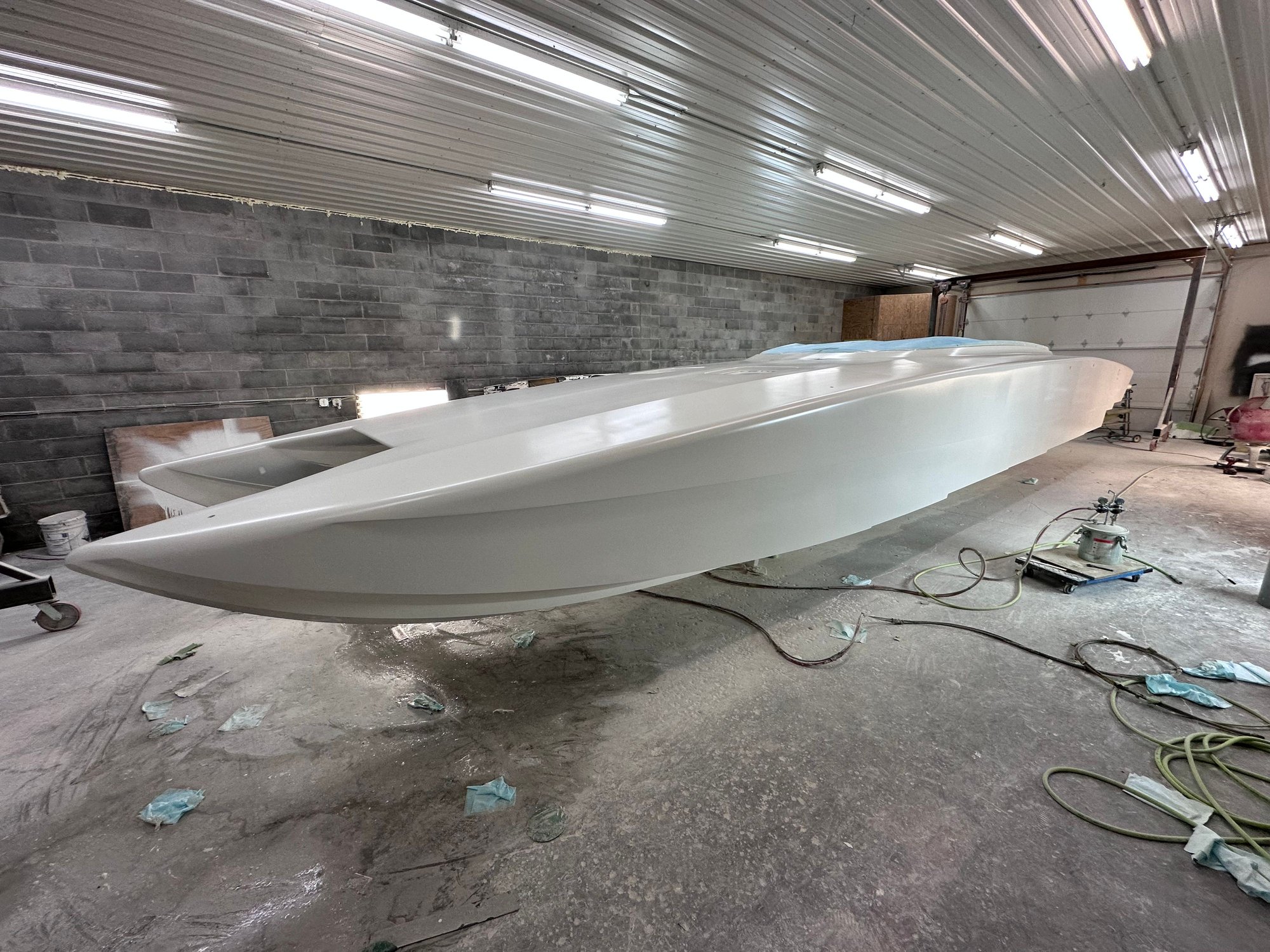 Fully capped , windshield conversion 28 skater in process after mass rot. Another x race boat with a past life. And a sweet 308 project rolling. Deleting the outboards, BBC and stern drive conversion. Tunnel extension getting roughed in and deleting the notch.