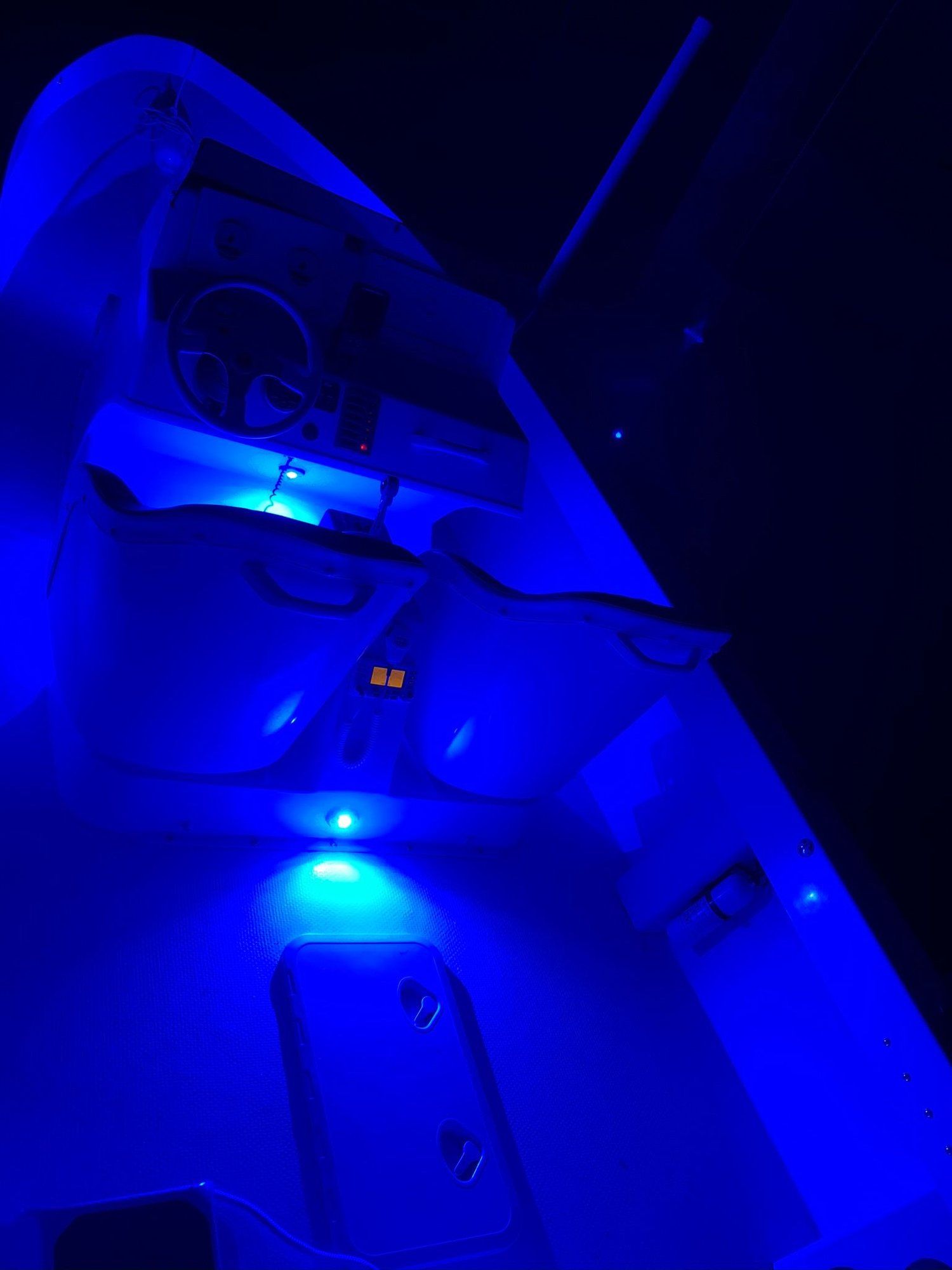 I installed 2 more. One on the aft side off the pedestal the seats sit on, and one on the underside of the center console above the drivers right knee. Haven’t had a chance to try them out in the dark yet, maybe tomorrow night if its not raining.