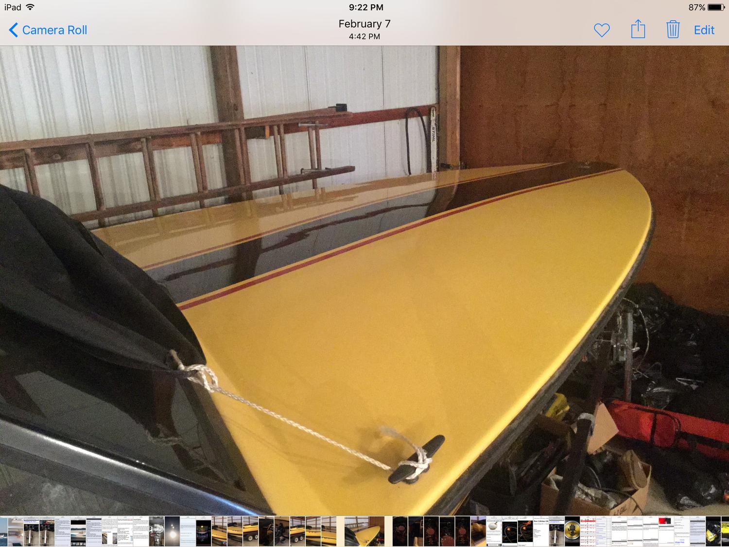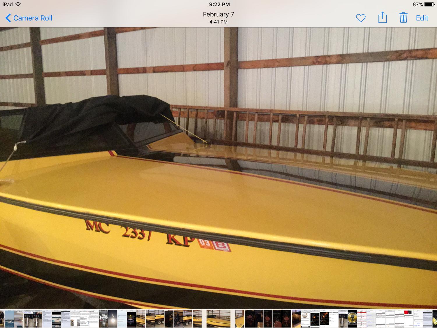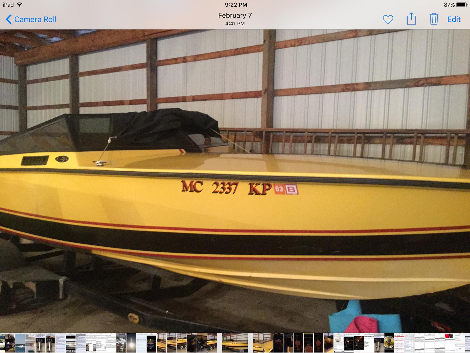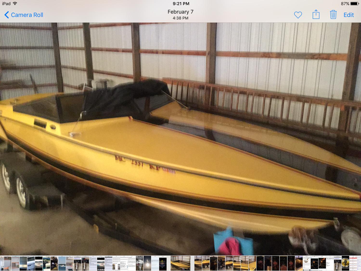 thank you! Its a neat boat and just needs a little tlc. previous owner is a friend of mine who had it for over 25 plus years and used on an inland lake here in NW MI. i bought it from him with intent of getting back on the water. fired it up on trailer and sounds great. just got busy with work and other project boat. hopefully goes to a good home. pictures are exactly way i got it from previous owner. he had it covered in storage for several years.