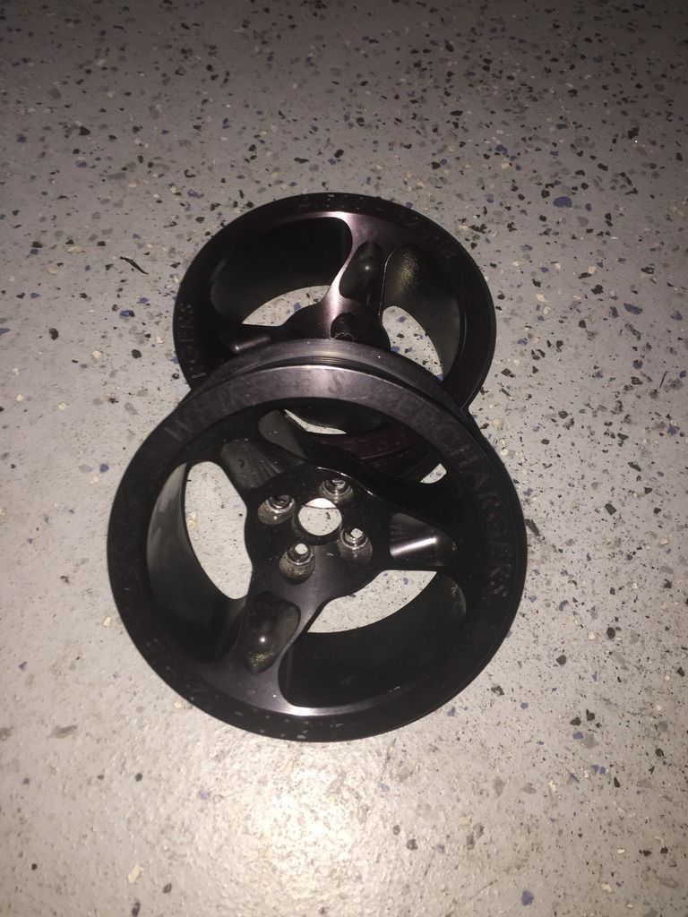 I have 2 black 12 rib 4.5" whipple supercharger pullies. Excellent condition just too big for my set up. $275 obo for both.