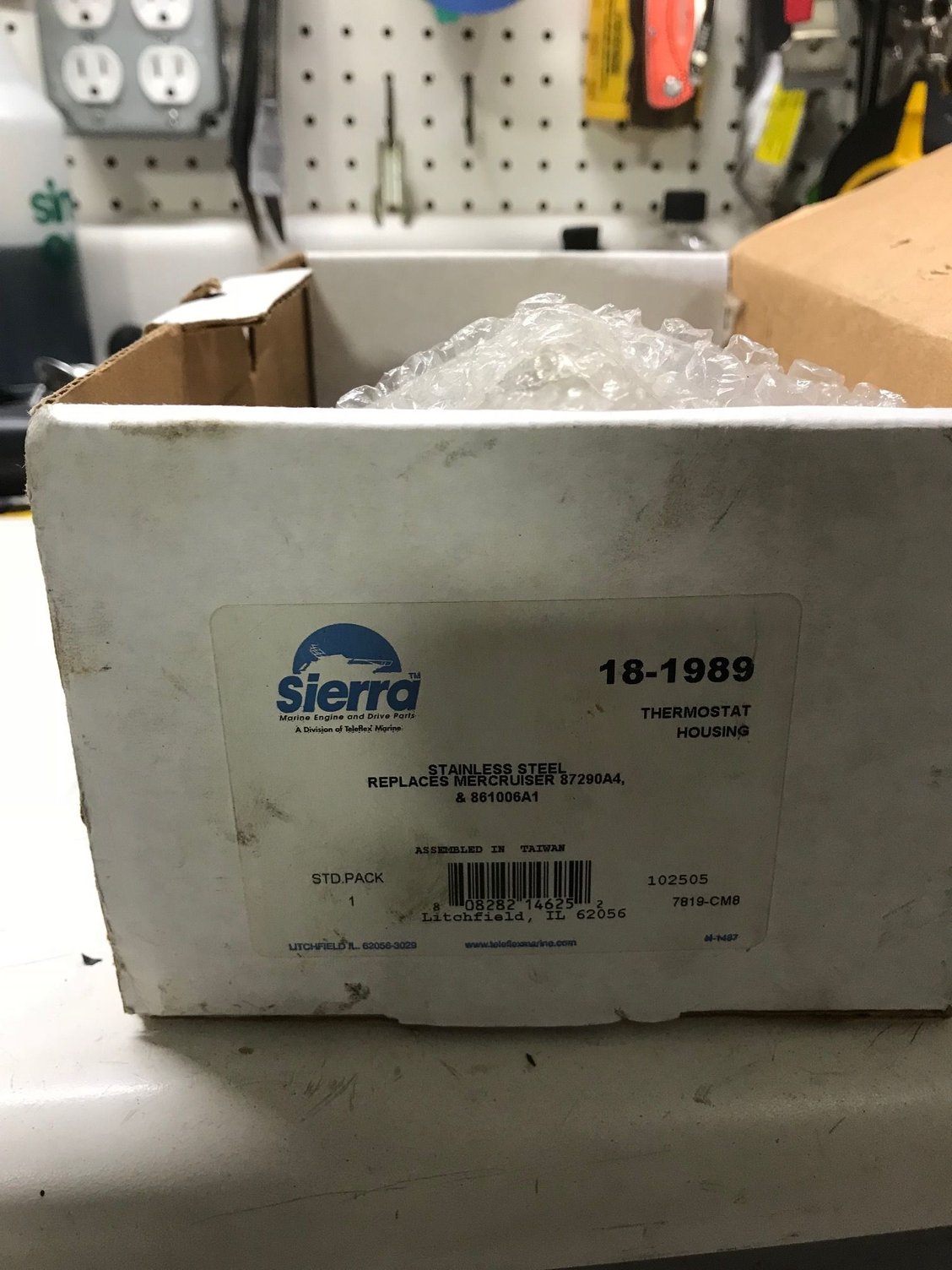 Lightly used Sierra stainless thermostat housing part number 18-1989, only has a couple hours of use. $100 plus the ride