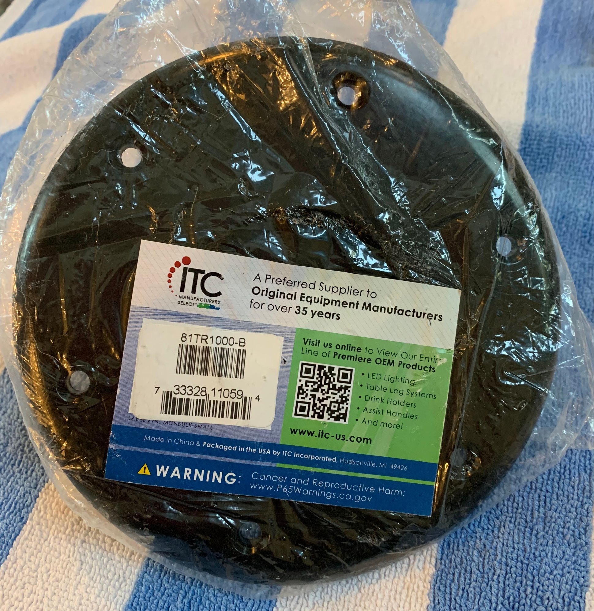 New black floor recessed base for table leg.