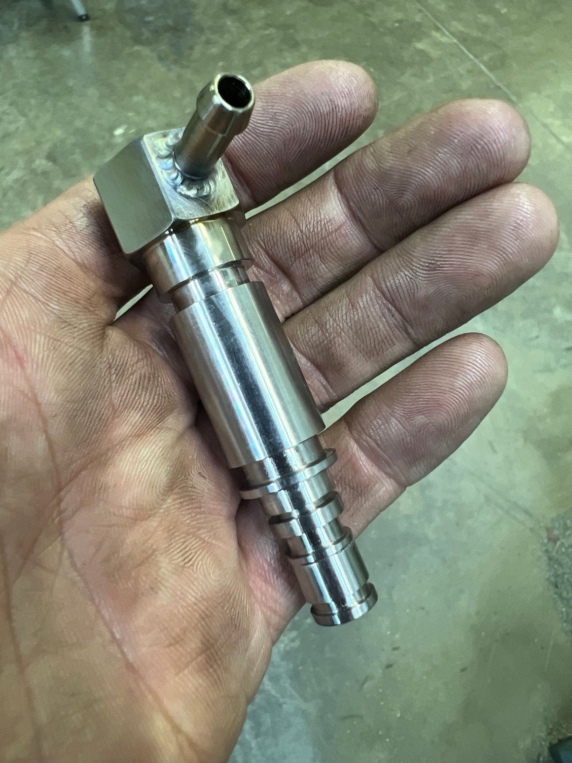 It would appear there is some interest, so I will be turning up a batch of them, and have them available. They are made from 316 stainless, and the hose barb is welded. This should pretty well be a forever replacement for the fragile plastic OEM unit. I will not be providing the O-rings at this time.