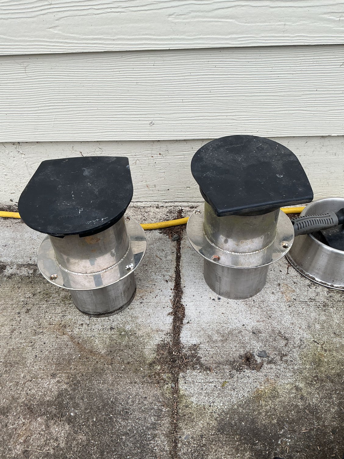 These are 5 inch thru hulls with GGB mufflers, I got a super deal on these many years ago, I just got a 4 to 5 inch exhaust tube from a diesel shop and used my standard 4 inch hose, if interested I will include them, they are not perfect but some elbow grease and they will look fine. The GGB mufflers are included they don’t make these anymore and I saw a thread on here from another company making similar ones and they were quite expensive, so how about 300.00 plus shipping