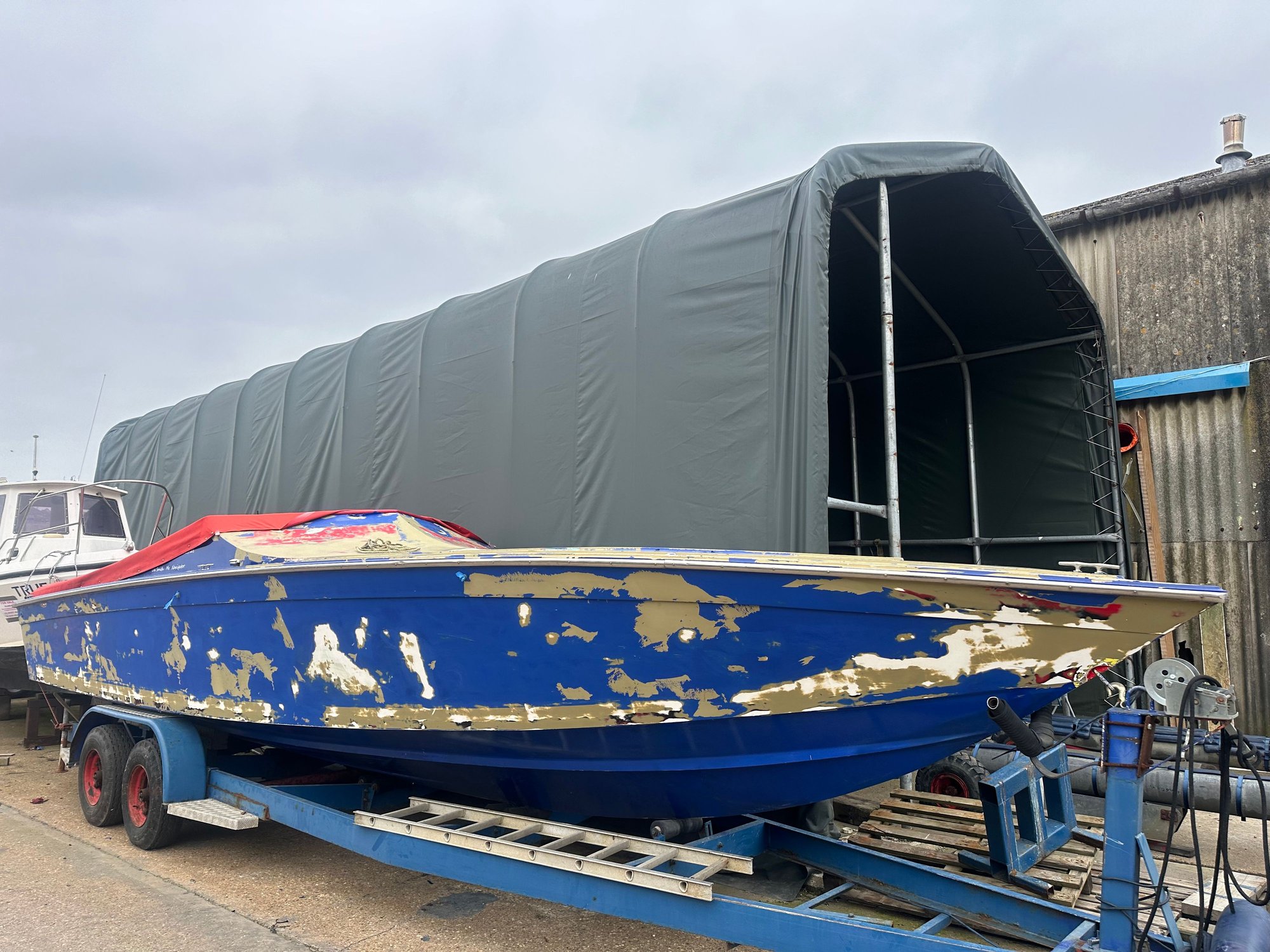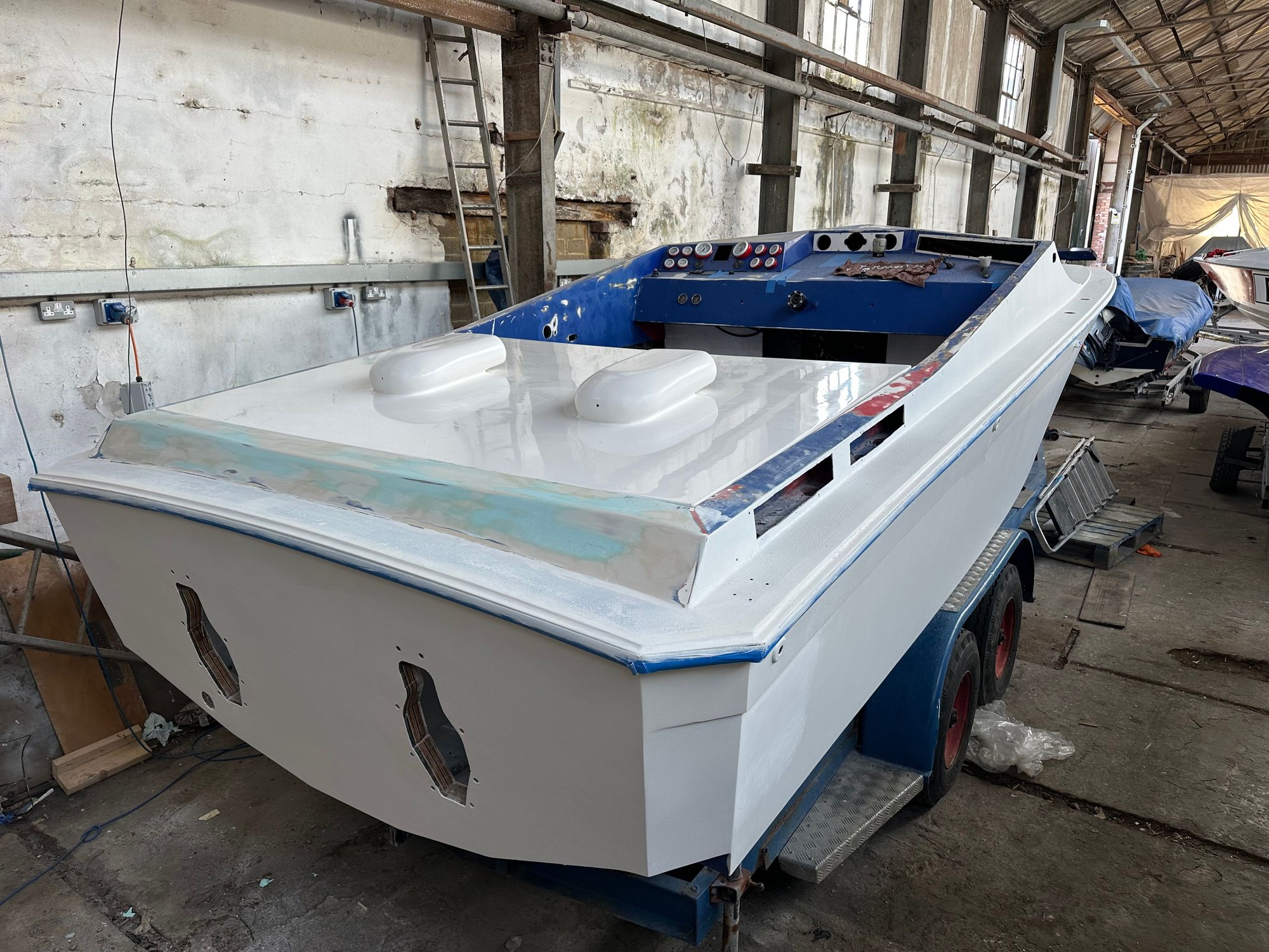 Bit more done on the boat. First few coats of primer made a new engine hatch to replace the double side opening heavy lids. I took part in the Cowes Torquay Cowes race. Throttled Dry Martini a 1973 Cigarette 35. 4th back over all. 3 infront were all 120+ MPH boats. And 1st in class. So made me pull my finger out and start on my own boat again.