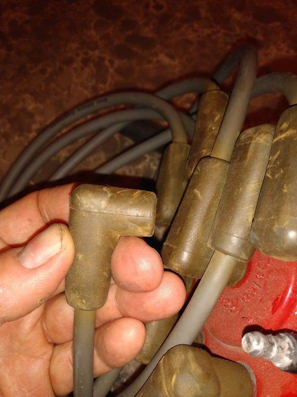 These wirers and boots were hard as a rock and the engine ran very poor. New cap and rotor and spark plug wires and plugs all good to go ran like a top as it should.. Pic below