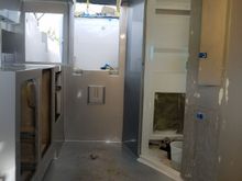 Hard to tell on the pics, but we painted a black stripe along where the windows will go