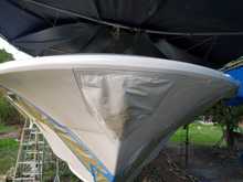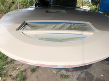 The original shape of where the cap meets the hull had more of a duck bill shape, so all of this area was built up with foam, glued in with epoxy and then glassed in.