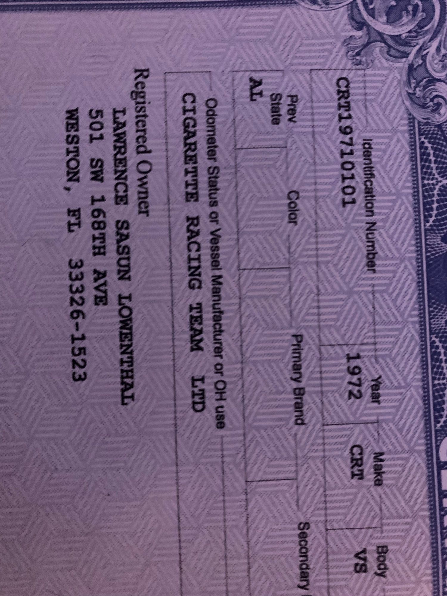 Can any one say first production cigarette ever!!! Found the al reg and got a fl title. Very happy!!!!