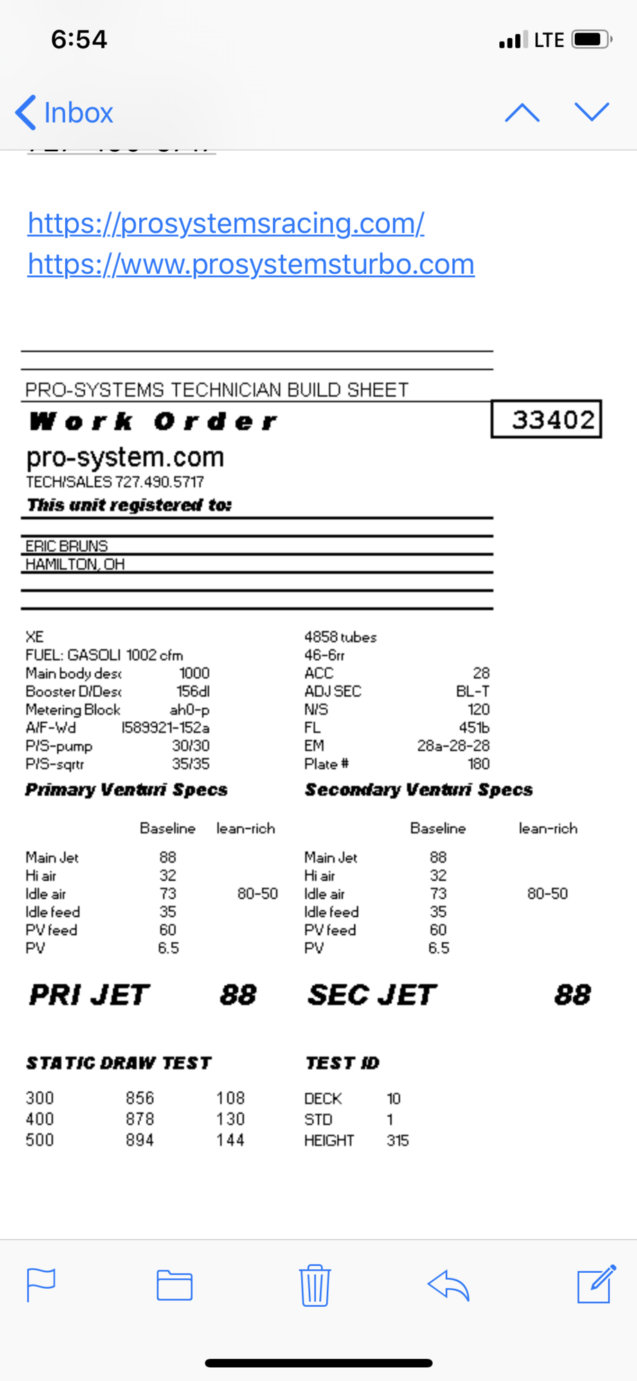 Build sheet for carb