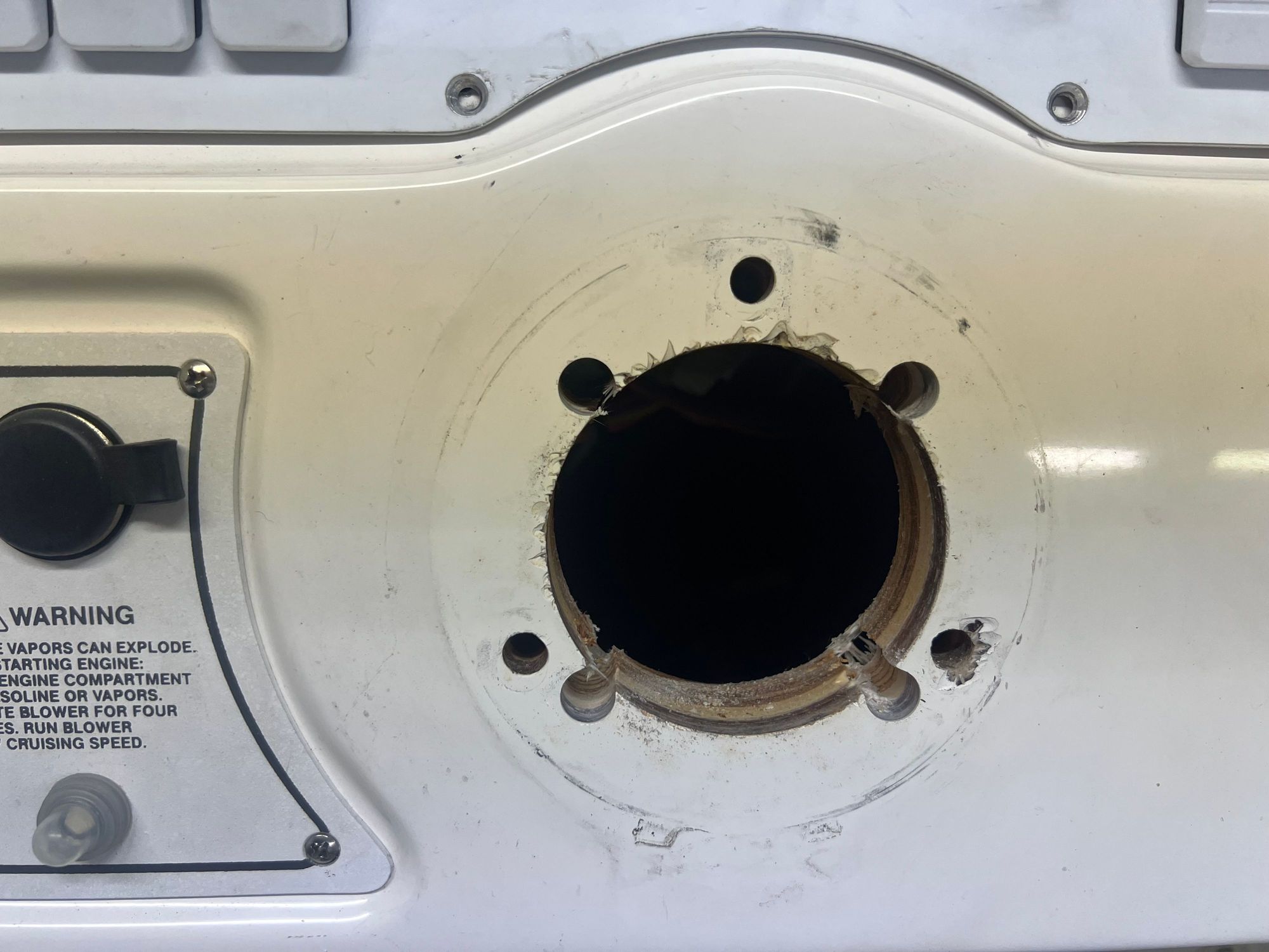 Holes drilled for helm. I’ll have to make a bezel to cover the holes from the old bezel.